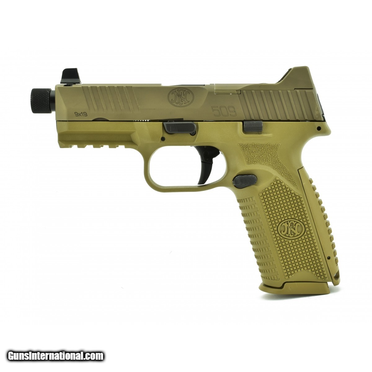 Description: " FN 509 9mm caliber pistol. Tactical model with FDE finish, bag and two extended magazines. Excellent condition. SOLD |