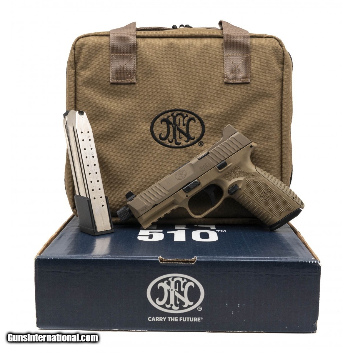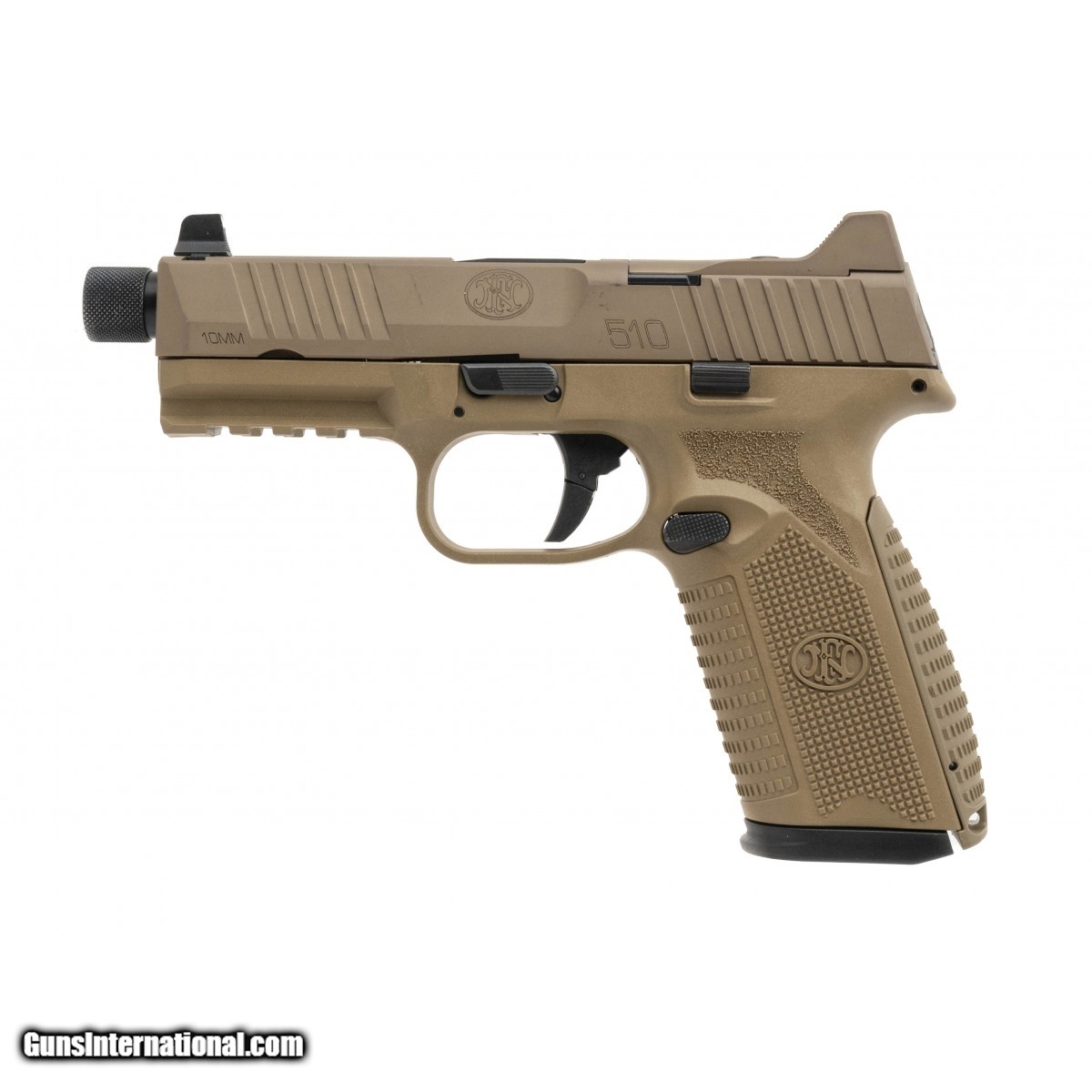 Description: " SN: BBP0011927. Modern production. 10mm with a 4.75"" threaded barrel. Bore is excellent. Semi-automatic optics ready pistol. FDE finish shows light holster wear but remains in very good condition. Pistol comes with box, range bag, and an extra magazine. Overall very good condition. SOLD |