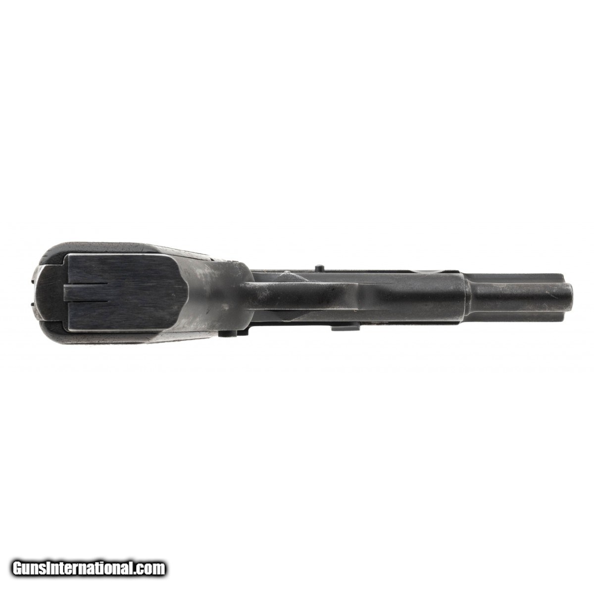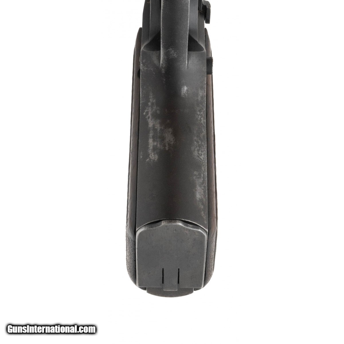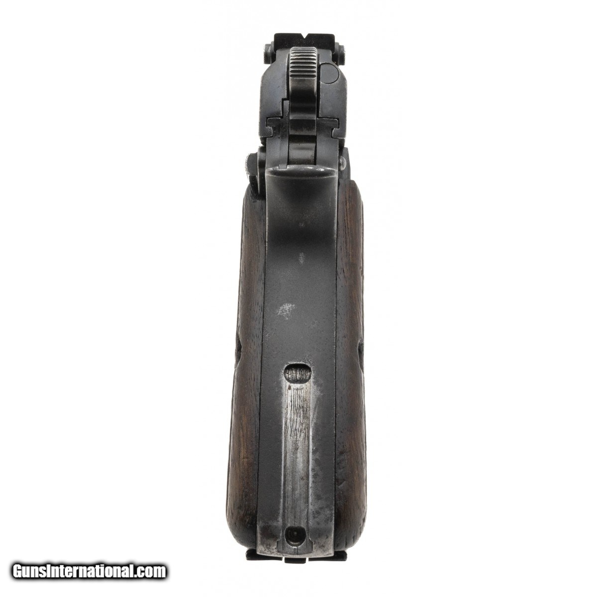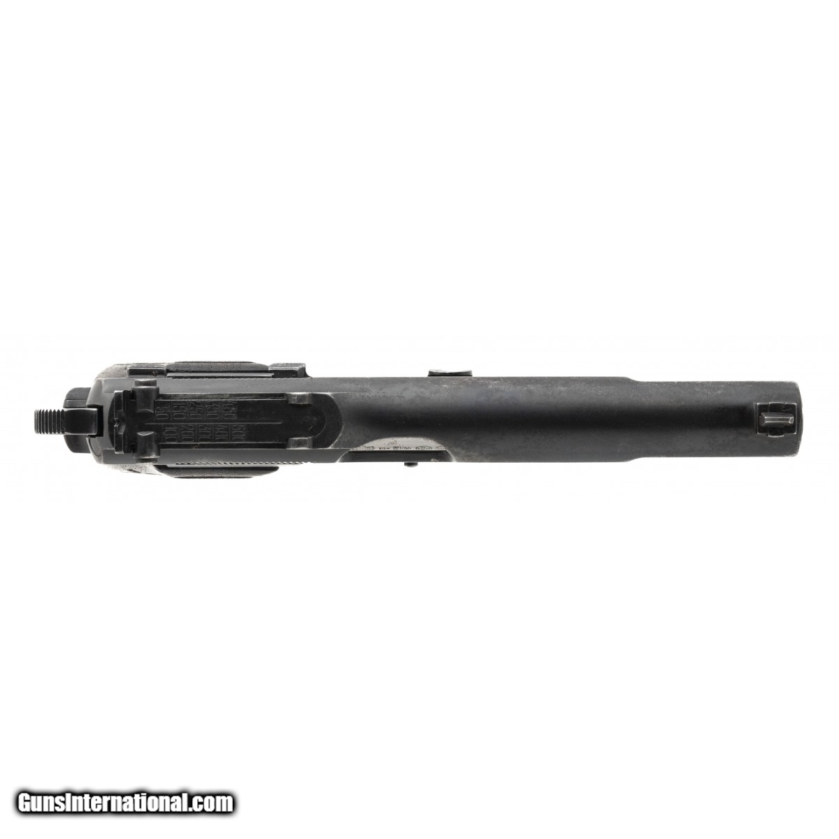 Description: "SN: 19135. 1930's production 9mm with a 4.7"" barrel. Bore is typical, evenly frosted with good rifling. Pre-WW II military Hi-Power with tangent sight and stock slot. Has about 70% dark finish mixed with gray patina. Consignment. SOLD |