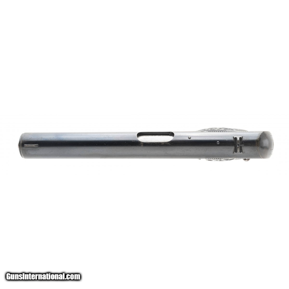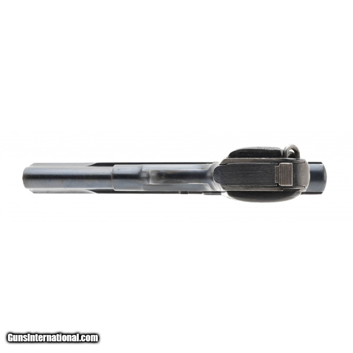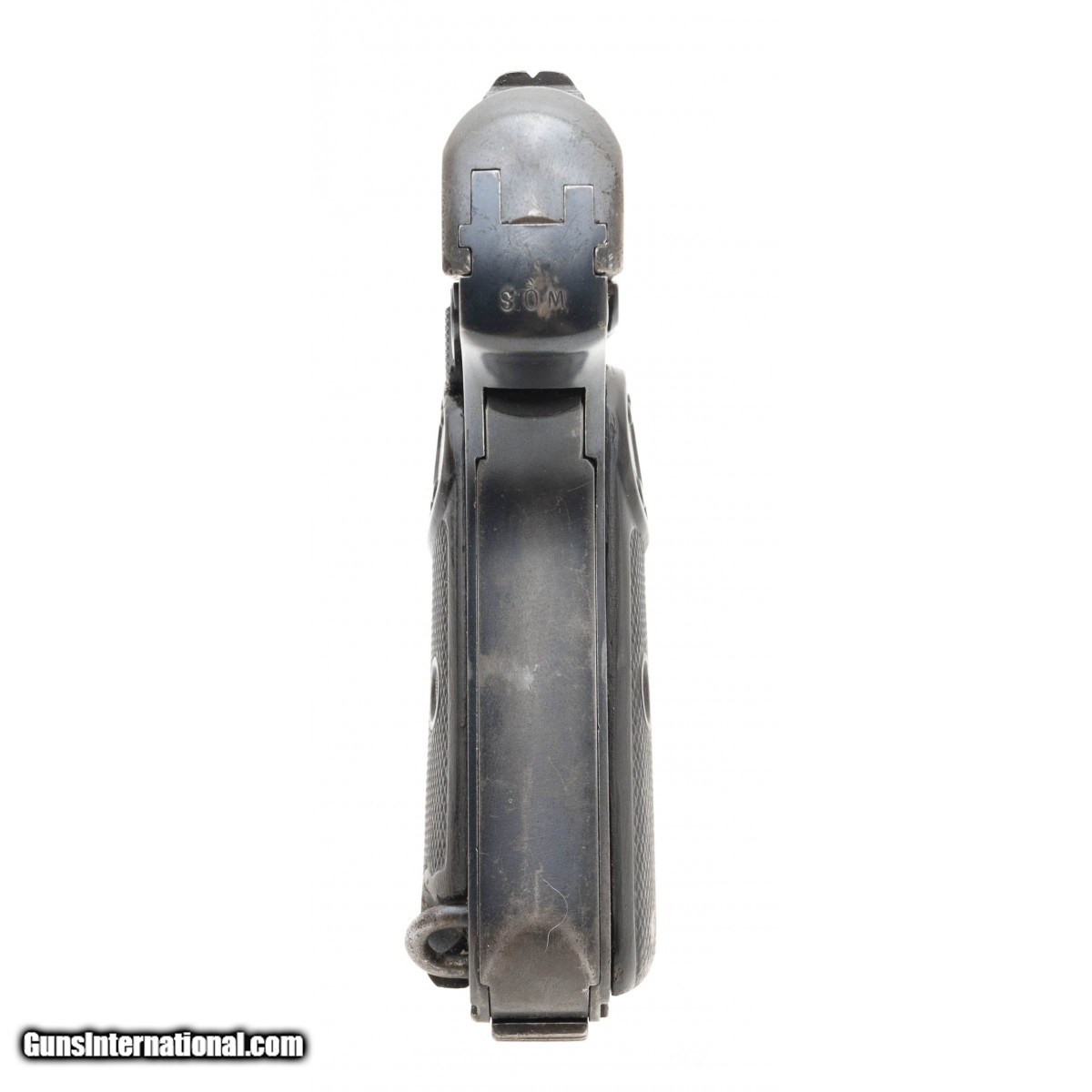The 9mm Browning Long (9X20) FN Browning Model 1903 was manufactured from 1903 to 1939. In addition, the Swedish and Spanish made copies. The 5"" barrel has an excellent bore with bright, strong rifling. The gun has approx. 92% blue with wear on the grip straps. The left side of the slide is marked FABRIQUE - NATIONALE - D'ARMES de GUERRE - HERSTAL - BELGIQUE. over BROWNING'S PATEENT DEPOSE. There are proof and inspection marks on the barrel, slide, and frame. The rear of the frame is stamped SOM. The checkered hard rubber grips with the FN logo are fine with light wear. The action functions correctly. These fine automatic pistols were sold to Sweden, Russia, the Ottoman Empire, England, Holland, Estonia, El Salvador, and Paraguay for their military forces. It's a must for any military pistol collection.