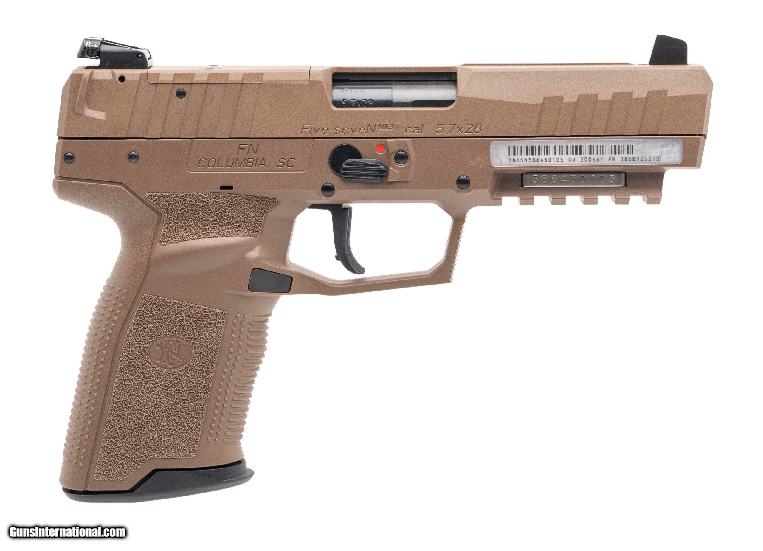 Description: "SN: 386450105 modern production FDE full size semi-auto polymer frame 5.7x28 pistol with a 4.8"" barrel 3 dot sight and optics ready slide in excellent overall condition. Comes with case and extra magazine. Price: $995.00 Contact Seller |