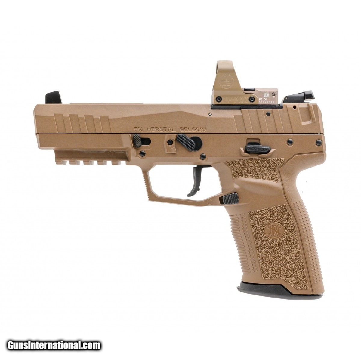 Description: "SN: 386438846. Current production 5.7x28 with a 4.8"" barrel. Tactical pistol with FDE finish. Has a Leupold Delta Point Pro. Overall excellent condition. SOLD |
