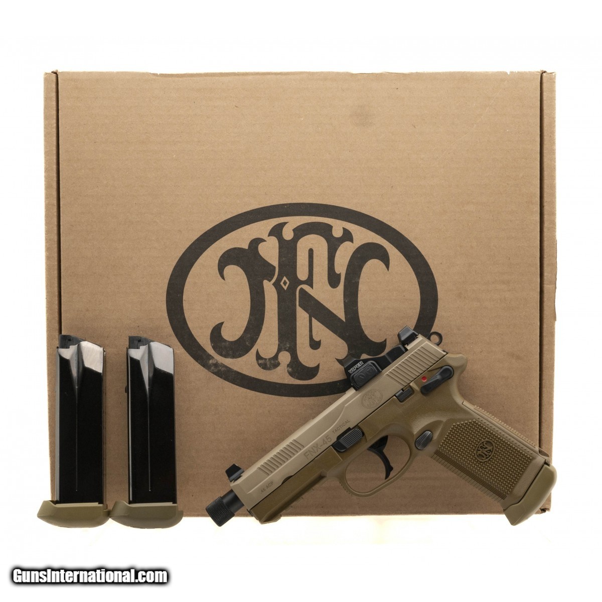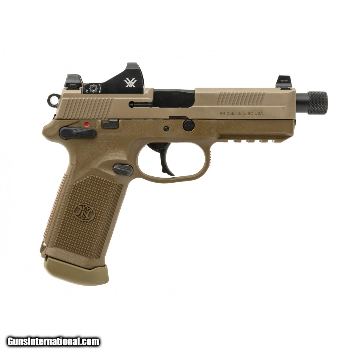 SN:FX3U157612. 5.25"" tactical pistol in a two tone FDE finish, optic cut, with a vortex venom mounted to the slide; has manual safety & decocker. In excellent condition. Includes box, range bag, paperwork, two spare magazines, assorted tools & parts.