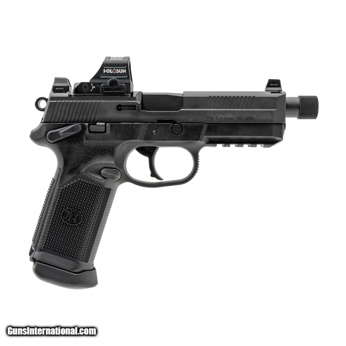 Description: " SN: FX3U149458. Modern production. Chambered in .45 ACP with a 5.3"" threaded barrel, bore is excellent. Full size handgun with polymer frame, suppressor ready night sights, accessory rail and safety-decocker. Overall excellent condition. Comes with range bag, 3 extra magazines and optic plates. Comes with Holosun HS507C X2 red dot. SOLD |