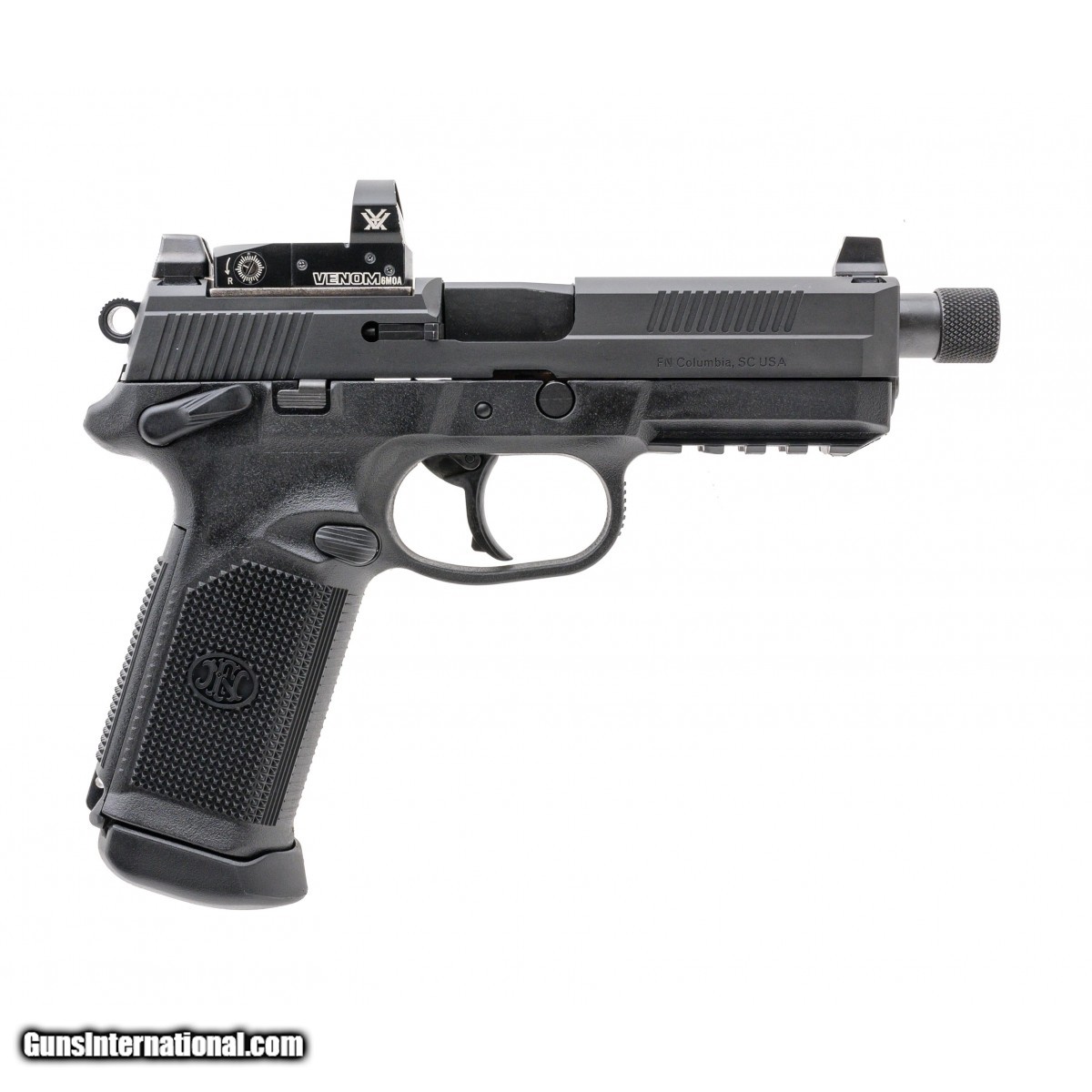 Description: " SN: FX3U133381. Modern production. .45 with a 5.25"" threaded barrel. Bore is excellent. Full size polymer frame handgun. Finish and grips are in excellent condition. Pistol comes with Case, 2 extra magazines, and Vortex Venom red dot. Overall excellent condition. SOLD |