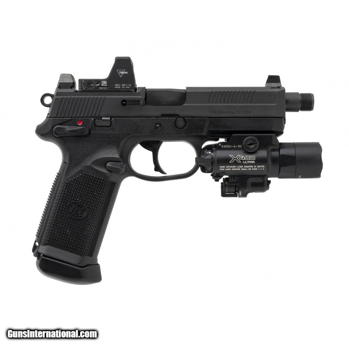 Description: " SN: FX3U142399. Modern production. .45 with a 5"" barrel. Bore is very good. Full size, polymer frame pistol. Finish and grips are in excellent condition. Pistol comes with range bag, 4 extra magazine, Surefire X400 Light/laser combo, and an Trijicon RMR. Overall very good condition. SOLD |