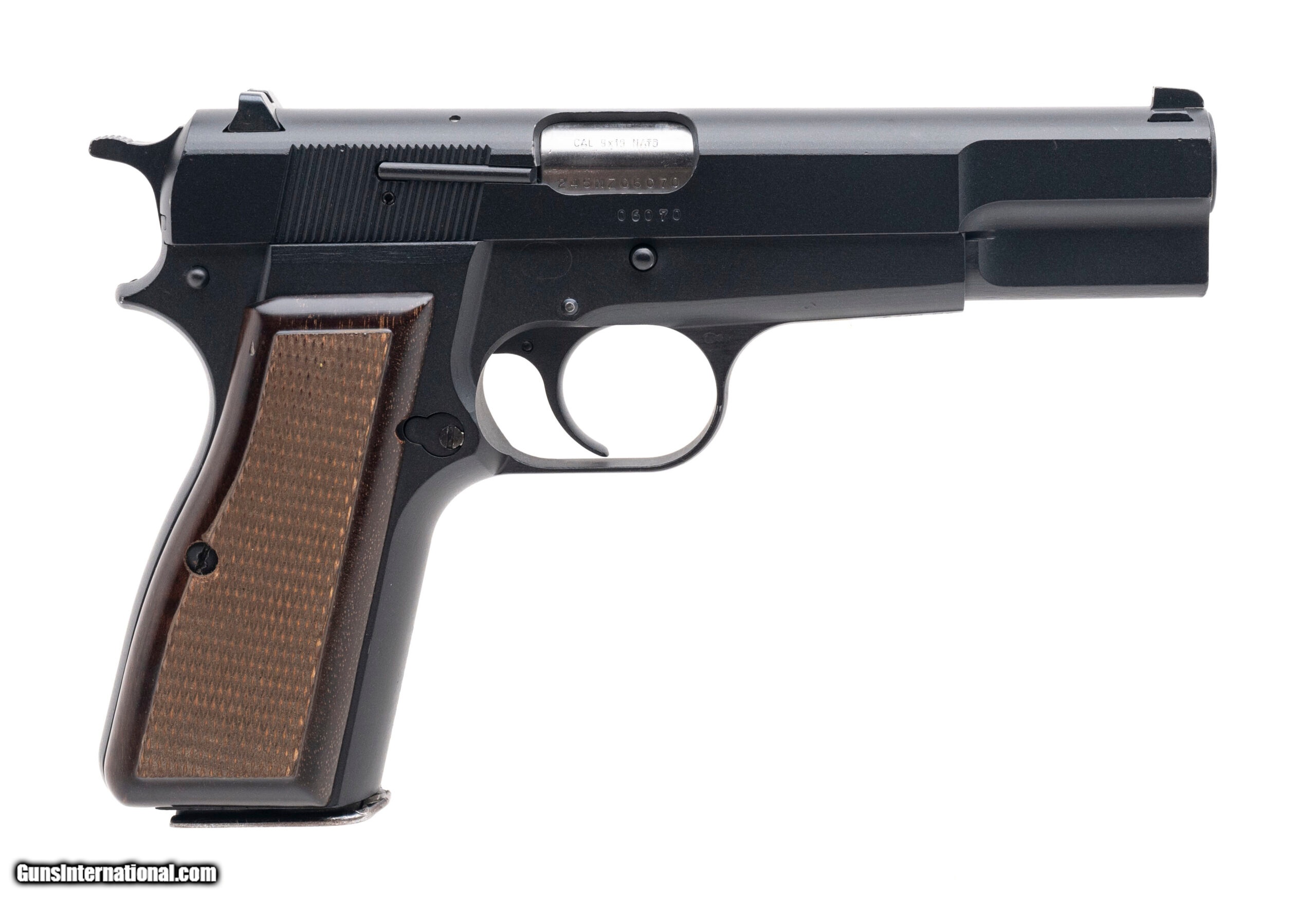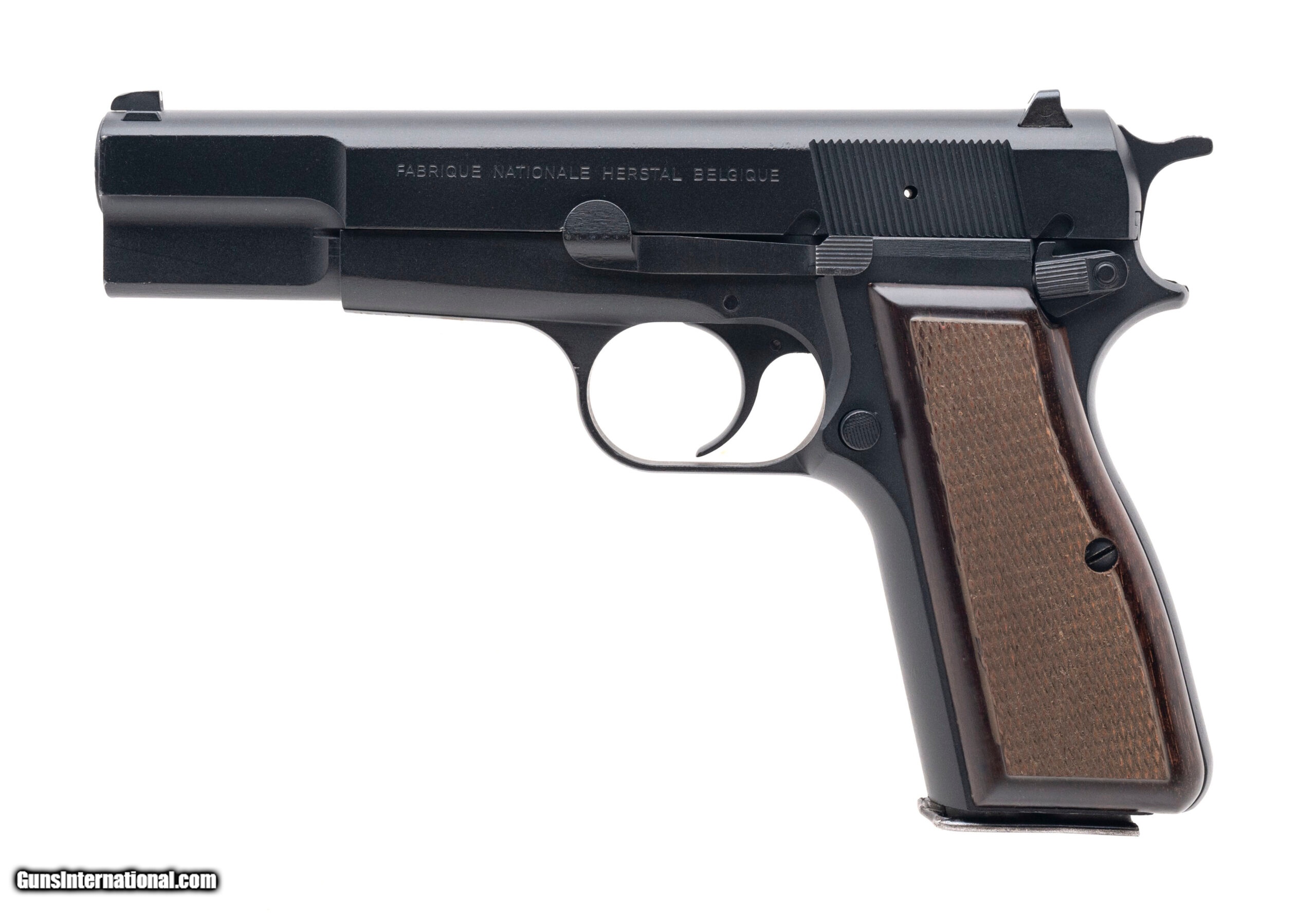 Description: "SN: 245NZ06070. Made in 1991, 9mm with a 4.7"" barrel. Belgian made Hi Power with parkerized finish and wood grips. Excellent condition. SOLD |