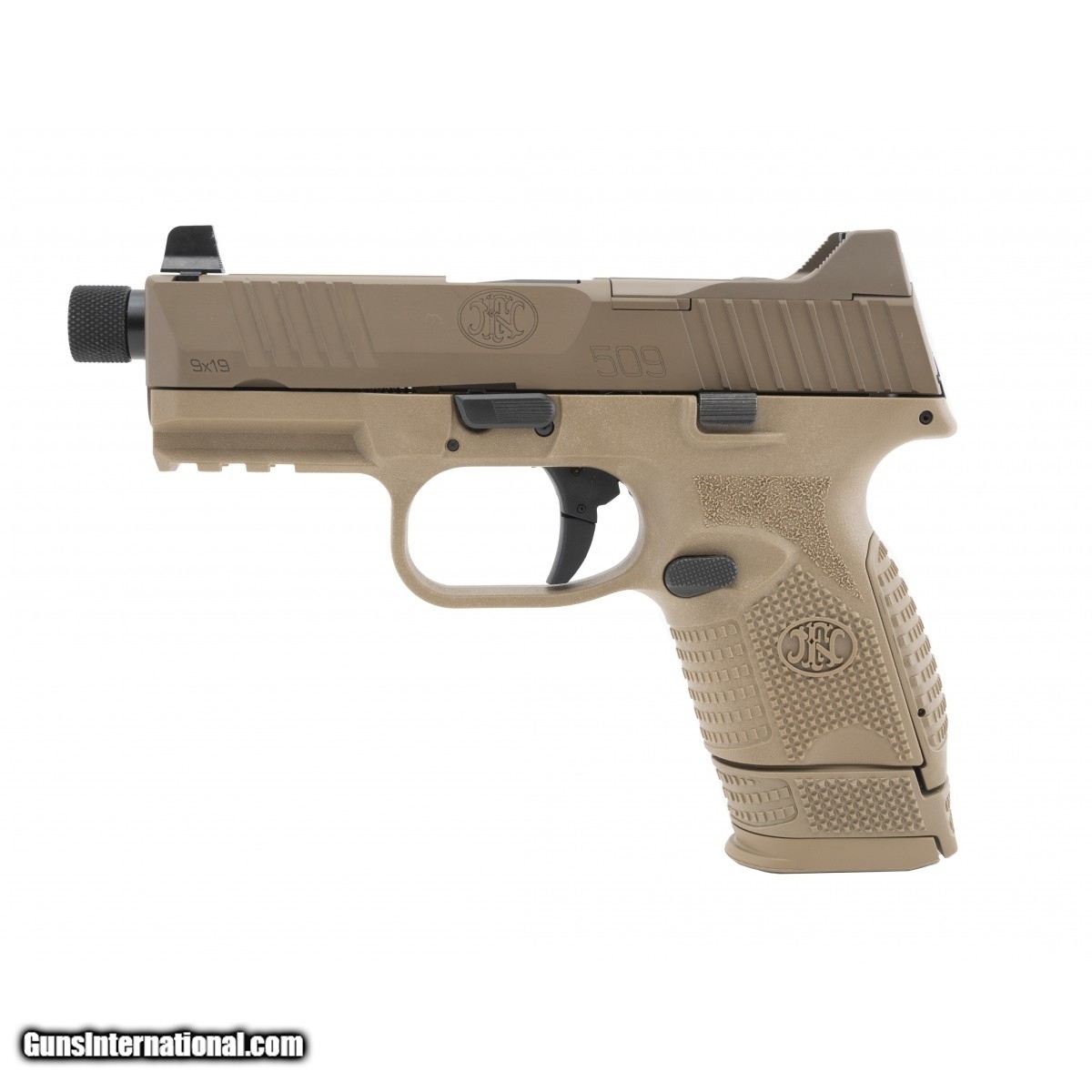 Compact tactical model in FDE with threaded barrel, raised night sights, and red dot mount. New.