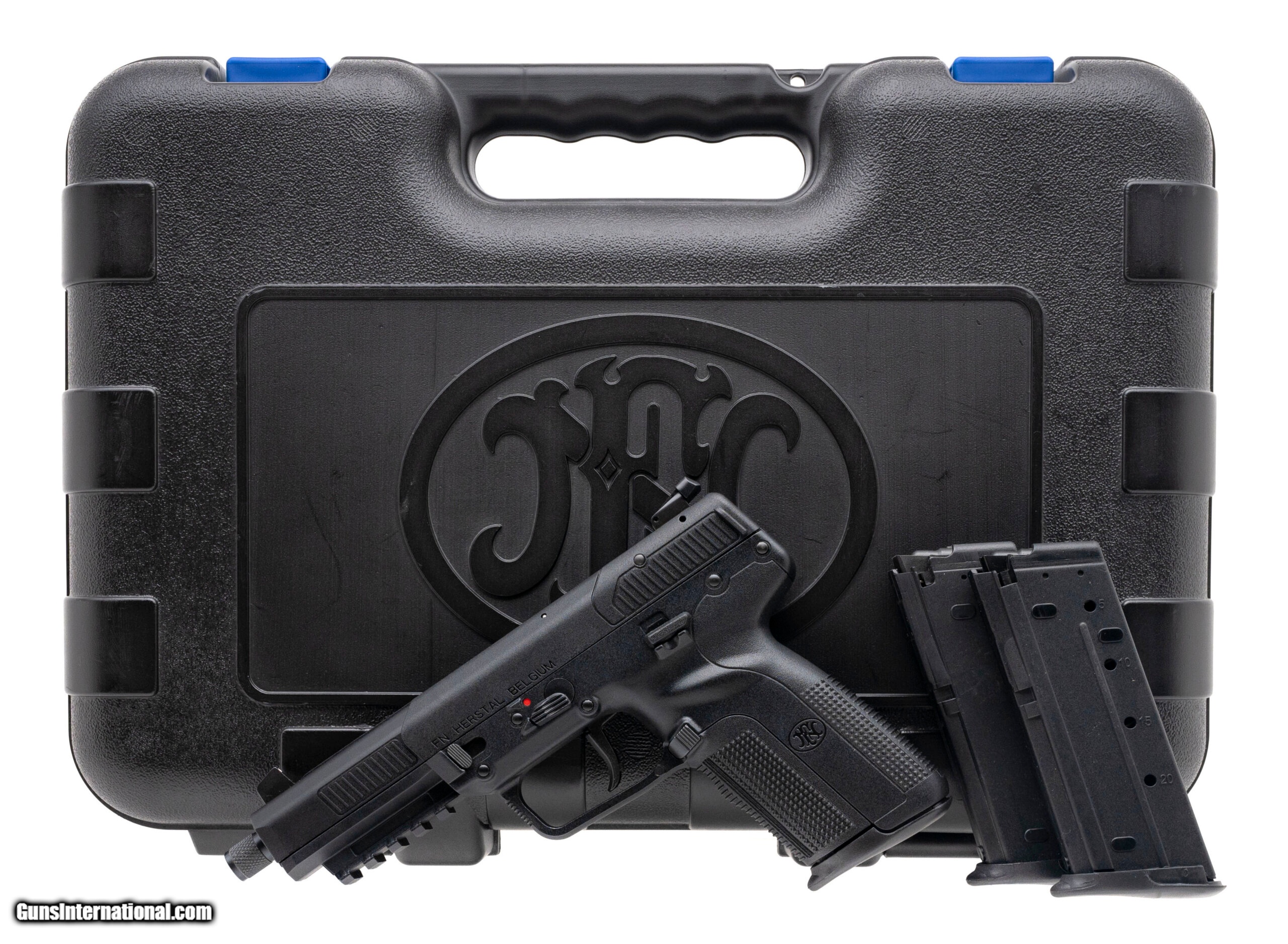 Description: "SN: 386278610. Modern production. 5.7X28 with a 5" threaded barrel. Bore is in excellent condition. Full size polymer frame pistol. Finish and grips are in excellent condition. Overall condition is excellent. Comes with case and two extra magazines. SOLD |