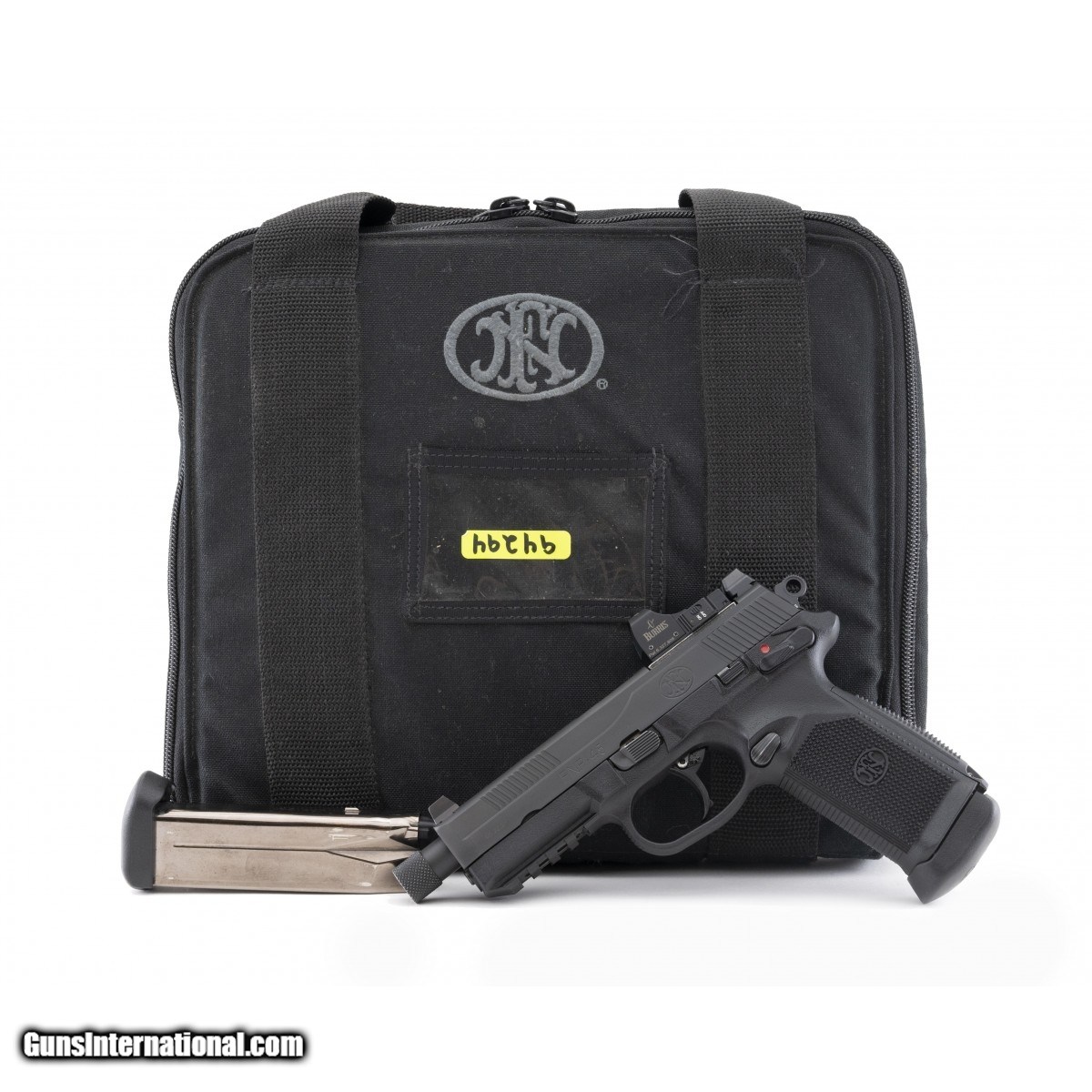 Full size double stack chambered in .45 ACP with 15 round capacity. Has threaded barrel, red dot, suppressor height sights, DA/SA trigger, and safety/decocker. Excellendt condition with bag and spare magazines.