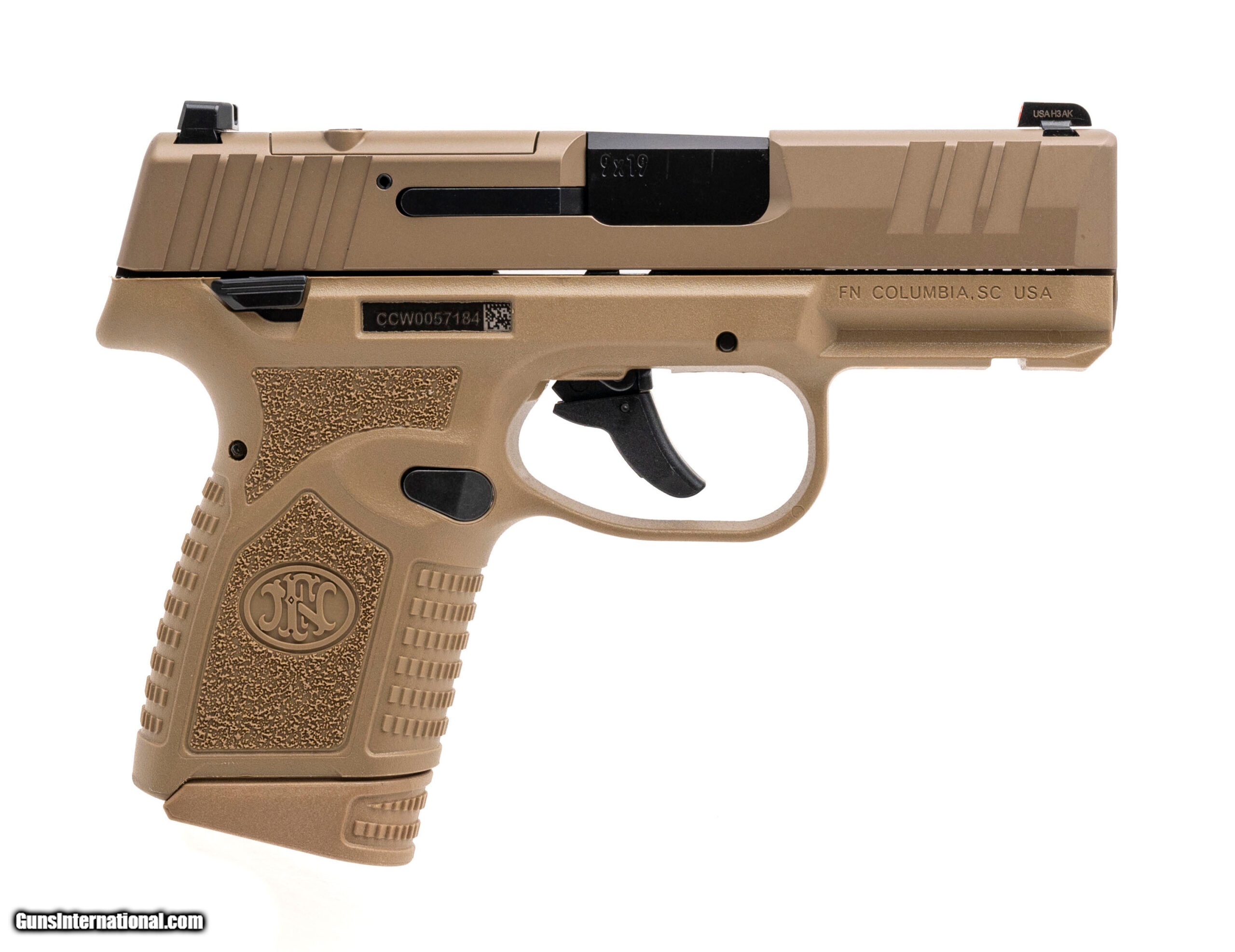Description: "Semi Automatic Polymer Frame Pistol with a 3.3"" Cold Hammer Forged Barrel and Manual Thumb Safety. PVD FDE Finish. Comes with an 11 and 15 Round Magazine. 2-Dot Rear Sight and Tritium Front Sight. Optics Ready. NEW. UPC: 845737017217 (STOCK PHOTO) SOLD |