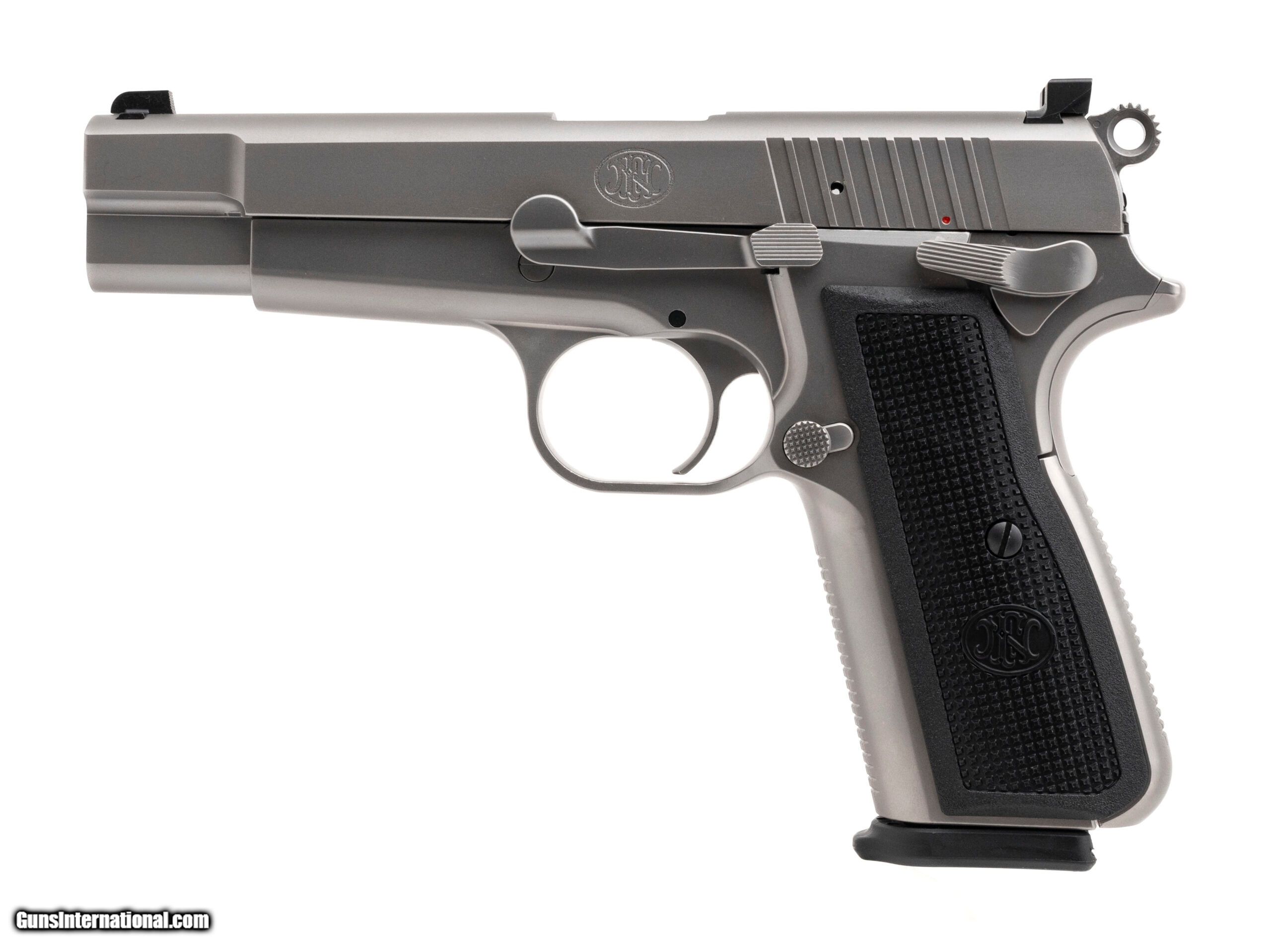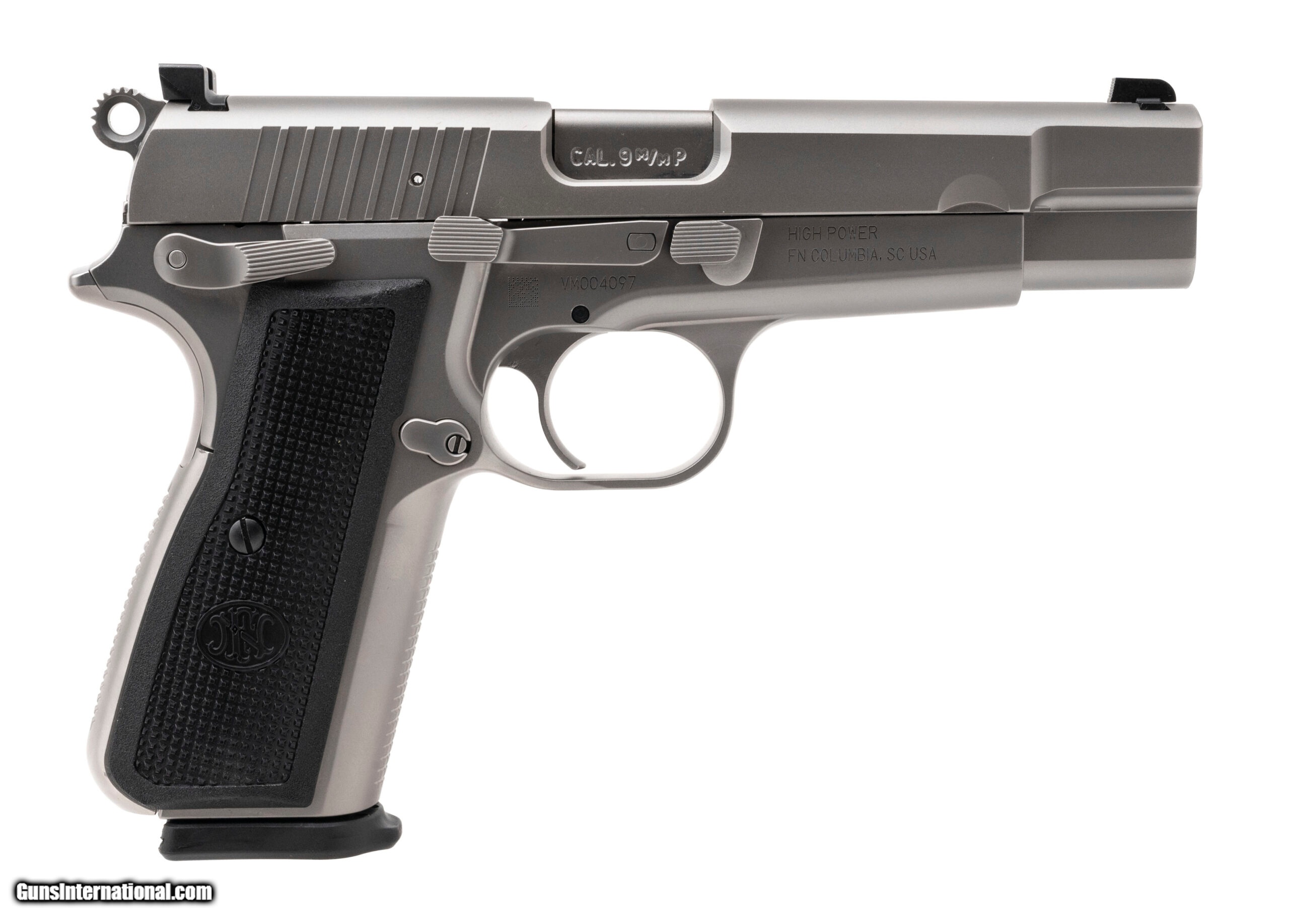 Description: "FN High Power Pistol. 9mm with a 4.7"" Barrel. Single Action Stainless Pistol with a Steel Frame, and Polymer Grips. NEW. UPC: 845737013592 (STOCK PHOTO) SOLD |