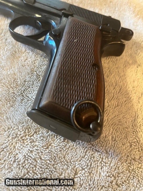 Description: Pistol is in nice shape with 1-13 round mag. Has minor pitting on the left side slide that can be seen in the photos. Dates to 1950, barrel, slide and frame all have matching serial numbers, red paint on back of grips. $25 Shippimg ffl to ffl Zelle, Cashiers, USPS MO, Credit/ Debit add 3% SOLD |