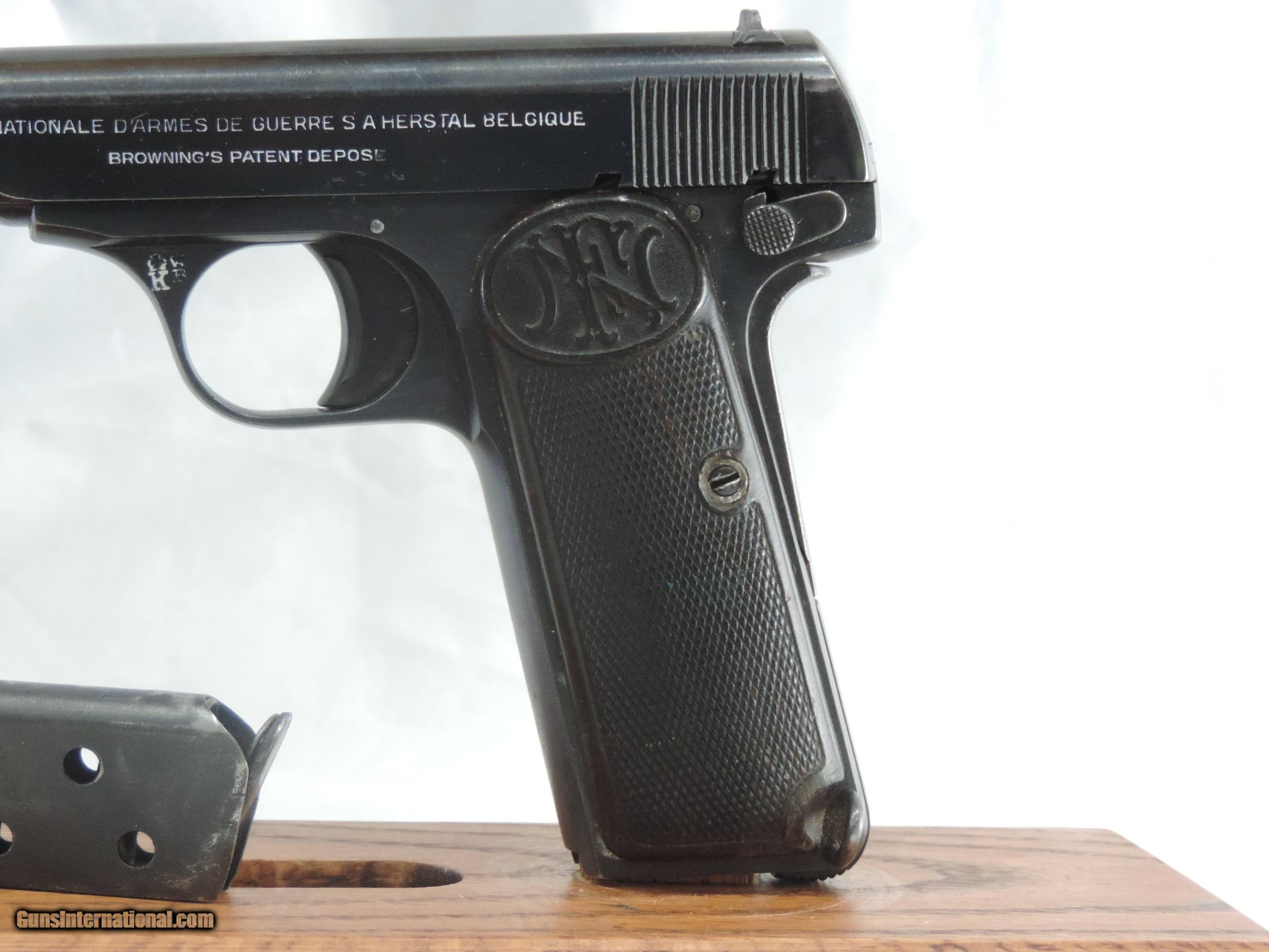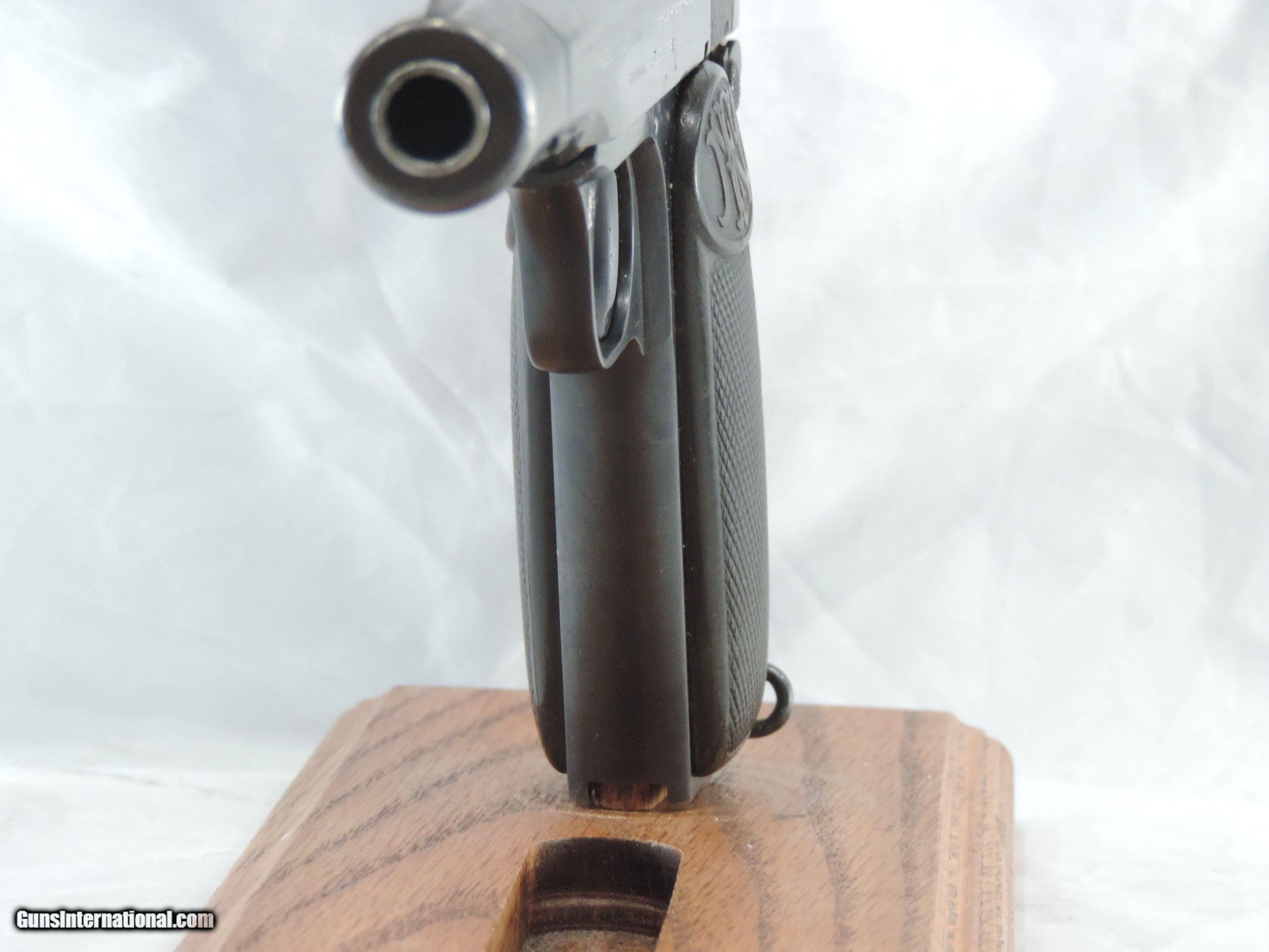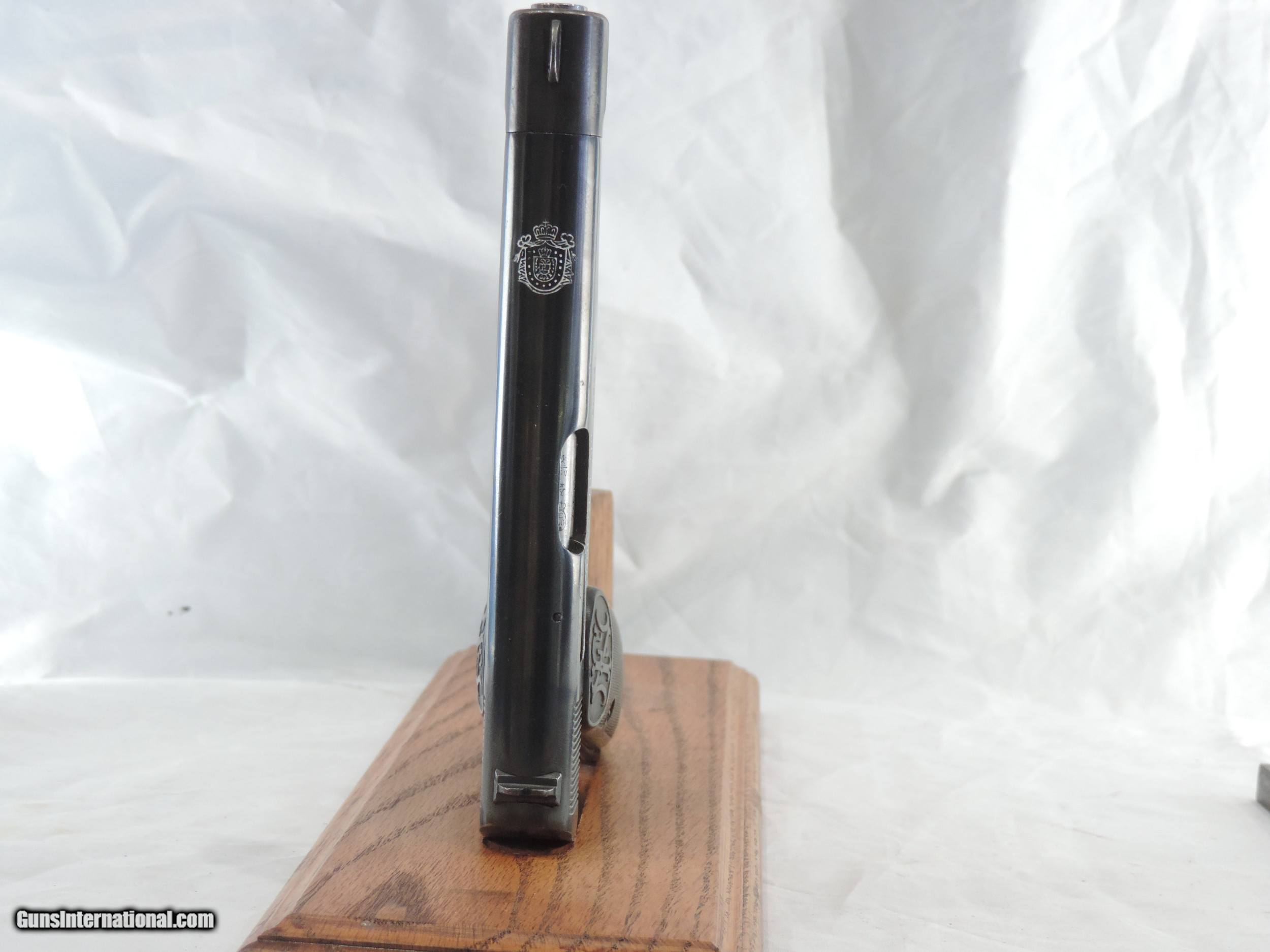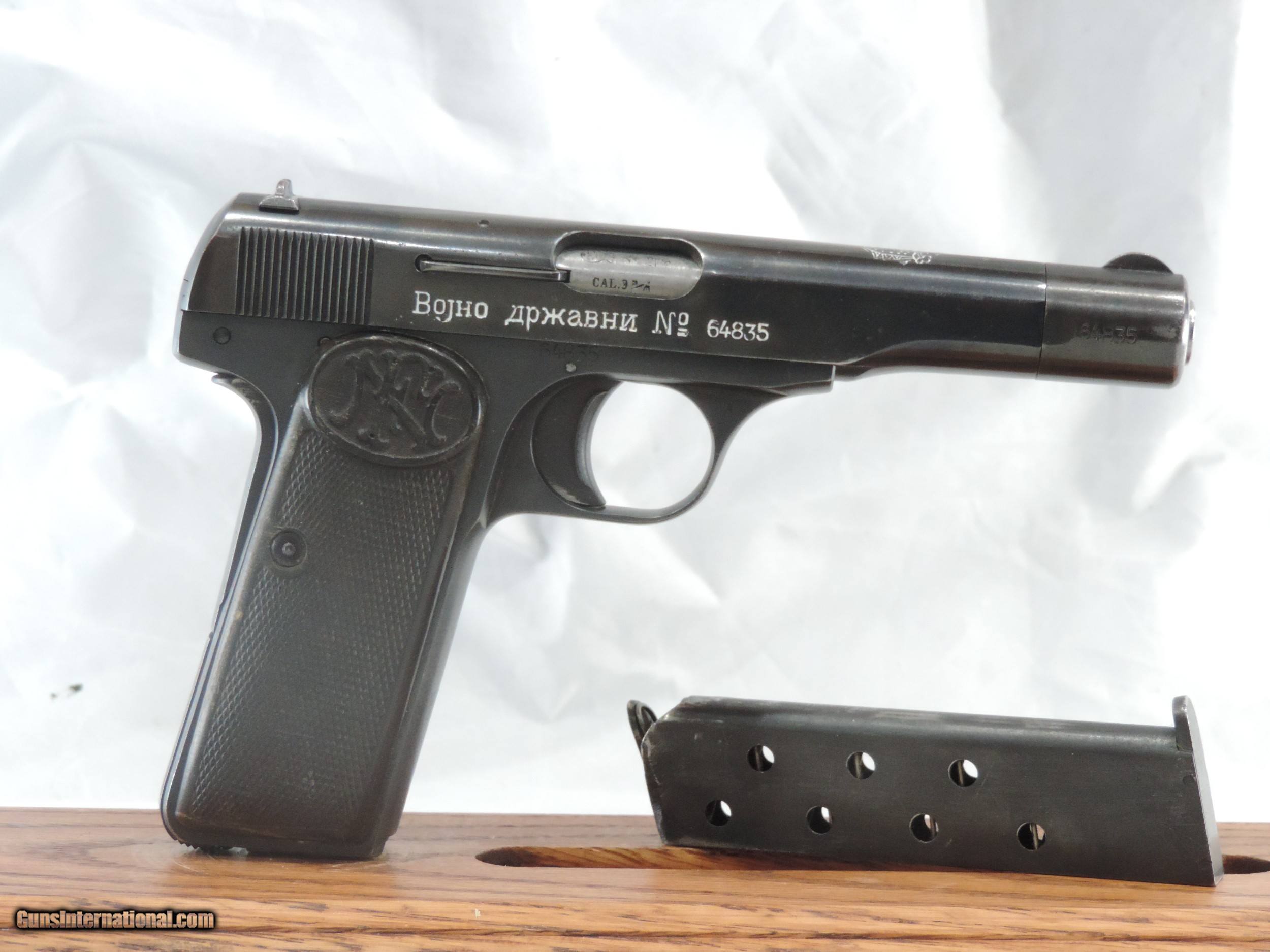 Description: INV. 10031 AWESOME YUGOSLAV BROWNING 1922, CAL .380, SER 64836. IN THE MID 1920'S YUGOSLAVIA ORDERED 67,000 OF THEM. THIS "HOLSTER QUEEN" HAS RETAINED ABOUT 96-97% OF THE ORIGINAL PRE-WAR FINISH.THE LITTLE LOSS THERE IS, IS DUE SOME SLIGHT SHARP EDGE SILVERING AND MUZZLE WEAR, PROBABLY FROM HOLSTER WEAR. THERE ARE NO RUST SPOTS, SCRATCHES OR RUB MARKS. THE GRIP STRAPS SHOWING NO SIGN OF GRAYING. ALL PARTS MATCH AND HAVE THE PROPER YUGOSLAV PROOFS**. THE YUOSLAV CREST IS ON THE TOP OF THE SLIDE, AND THE LEFT SIDE SAYS "WAR DEPARTMENT". THE ORIGINAL BLACK PLASTIC GRIPS ARE PERFECT AS IS THE GRIP SCREW. THE SLIDE RAILS, BOLT FACE AND FEED RAMP SHOW LITTLE IF ANY USE. THE BORE IS AS PRISTINE AS THE REST OF THE GUN, MIRROR BRIGHT WITH RAZOR SHARP RIFLING, AND POSSIBLY A WHISP OF FROST. IT COMES WITH ONE ORIGINAL9 ROUND MAGAZINE. AND THE ORIGINAL HOLSTER IN VERY NICE CONDITION. THIS "HOLSTER QUEEN" WOULD SATISFY EVEN THE MOST CRITICAL COLLECTOR AND WOULD ADD BEAUTY TO ANY COLLECTION. MODESTLY PRICED AT .... $995.*** **THE HARMLESS WHITE CRAYON IS TO SHOW THE MARKINGS ARE CORRECT. THEY ARE EASILY REMOVED WITH LIGHTER FLUID AND A BRUSH. WE WILL DO IT ON REQUEST. ***100% OF THE GUN'S PURCHASE PRICE IS SATISFACTION GUARANTEED. To purchase this firearm or if you want to request more information contact us at: Email ckguns[at]ymail[dot]com Phone 201-512-0002 Cell 201-575-6838 FAX 201-215-4759 We accept most major credit cards. Prices shown are Discounted 3% for Cash or Check. The buyer must be familiar with all the laws governing the purchase and the ownership of firearms in their own city and state. The Yankee Armorer, Inc is not responsible for any failure to comply with or observe these laws. The Yankee Armorer, Inc will only ship after full payment and receipt of all required documents. Shipping: Add $35.00 for handguns, $45.00 for long guns. New Jersey buyers are subject to a 7% sales tax. The Yankee Armorer, Inc offers a 3 day inspection period with full refund upon return of intact firearm and in the original condition. The Yankee Armorer, Inc offers a no interest lay away program - 25% down; 25% in 30 days; 25% in 60 days; and full payment in 90 days. Any violation of this policy is subject to restocking and forfeiture of all payments. Any variation from this policy must be agreed to in advance. Unshipped Cancelled sales are subject to a 20% restocking fee. Be advised that all firearms sold by The Yankee Armorer, Inc. or the Gun Exchange, LLC (SELLER) are sold as collector’s items. They have not been fired or tested for safety and must be examined by a license gunsmith prior to use. By purchasing any item from the (SELLER), you are agreeing to hold the (SELLER) free from any damages or lawsuits of any nature. Any item left for transfer or storage will be charged to $25.00 per month, per item from the day of its receipt. Any variation from this policy must be agreed to in advance. Store hours 10:00 am to 5:00 pm Tuesday -Saturday. It's always best to call for appointment. Store 201-512-0002, cell 201-575-6838. SOLD Curio/Relic: Yes |