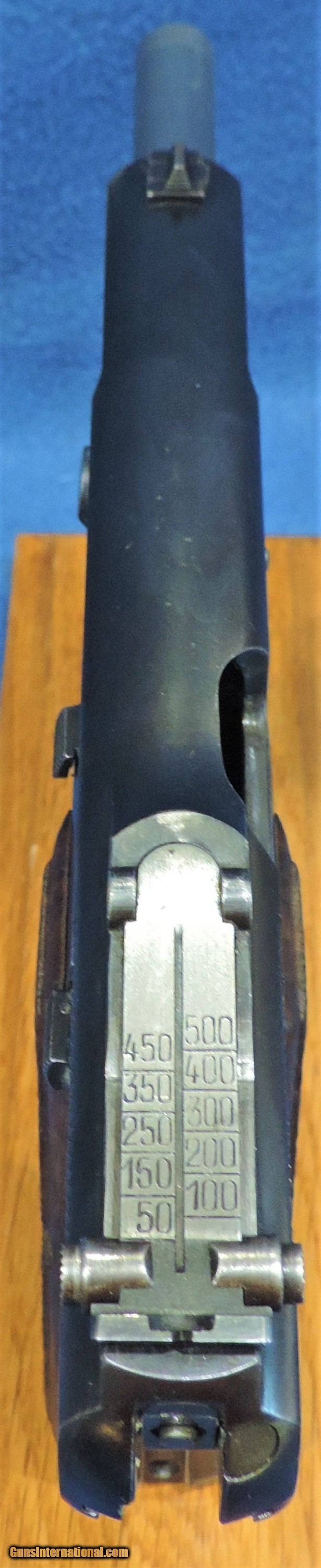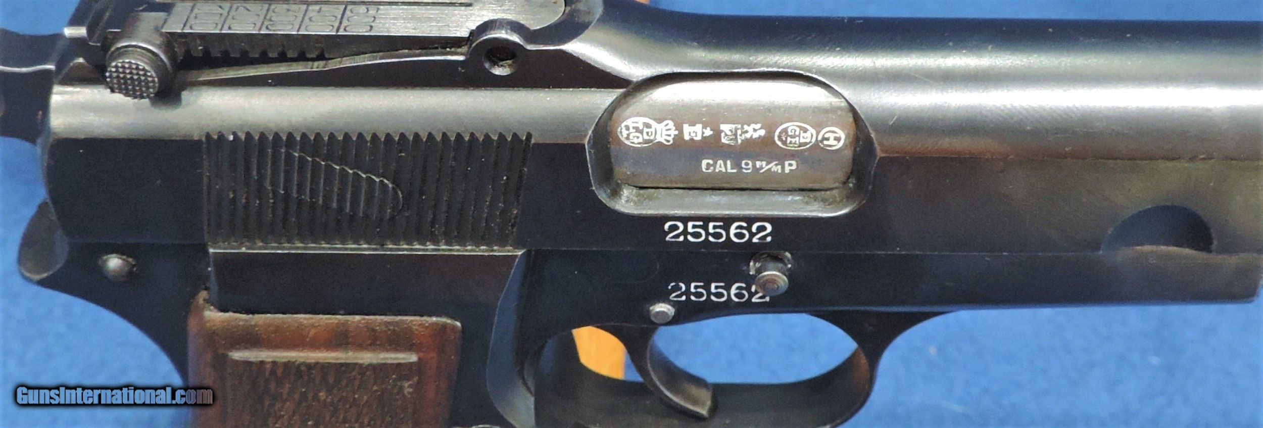 Description: F.N. Browning (Pre War) Tangent Sight With Stock, P-35, Cal. 9 mm, Ser. 255XX. Absolutely awesome condition veterans bring back. The gun has retained at least 98-99% of the original blue. No rust, rub marks or pits any where. The only loss is from some very slight sharp edge silvering. The barrel, slide and frame match. The factory walnut grips are almost as nice. The left one does have an inch of slightly flattened points. They have no other flaws. The grip screws are perfect. The bolt face, slide rails and the feed ramp show little use. The bore, like the rest of the gun, is pristine. Sunshine bright with razor sharp rifling. It comes with one correct split tail mag and a very rare F.N. proofed non matching board stock. This will be an outstanding addition to any collection and a great investment. And you get our "Purchase Satisfaction Guarantee" only...... Shipped $3495 OBO To purchase this firearm or if you want to request more information contact us at: Email ckguns[at]ymail[dot]com Phone 201-512-0002 Cell 201-575-6838 FAX 201-215-4759 We accept most major credit cards. Prices shown are Discounted 3% for Cash or Check. The buyer must be familiar with all the laws governing the purchase and the ownership of firearms in their own city and state. The Yankee Armorer, Inc is not responsible for any failure to comply with or observe these laws. The Yankee Armorer, Inc will only ship after full payment and receipt of all required documents. Shipping: Add $35.00 for handguns, $45.00 for long guns. New Jersey buyers are subject to a 7% sales tax. The Yankee Armorer, Inc offers a 3 day inspection period with full refund upon return of intact firearm and in the original condition. The Yankee Armorer, Inc offers a no interest lay away program - 25% down; 25% in 30 days; 25% in 60 days; and full payment in 90 days. Any violation of this policy is subject to restocking and forfeiture of all payments. Any variation from this policy must be agreed to in advance. Unshipped Cancelled sales are subject to a 20% restocking fee. Be advised that all firearms sold by The Yankee Armorer, Inc. or the Gun Exchange, LLC (SELLER) are sold as collector’s items. They have not been fired or tested for safety and must be examined by a license gunsmith prior to use. By purchasing any item from the (SELLER), you are agreeing to hold the (SELLER) free from any damages or lawsuits of any nature. Any item left for transfer or storage will be charged to $25.00 per month, per item from the day of its receipt. Any variation from this policy must be agreed to in advance. Store hours 10:00 am to 5:00 pm Tuesday -Saturday. It's always best to call for appointment. Store 201-512-0002, cell 201-575-6838. SOLD |