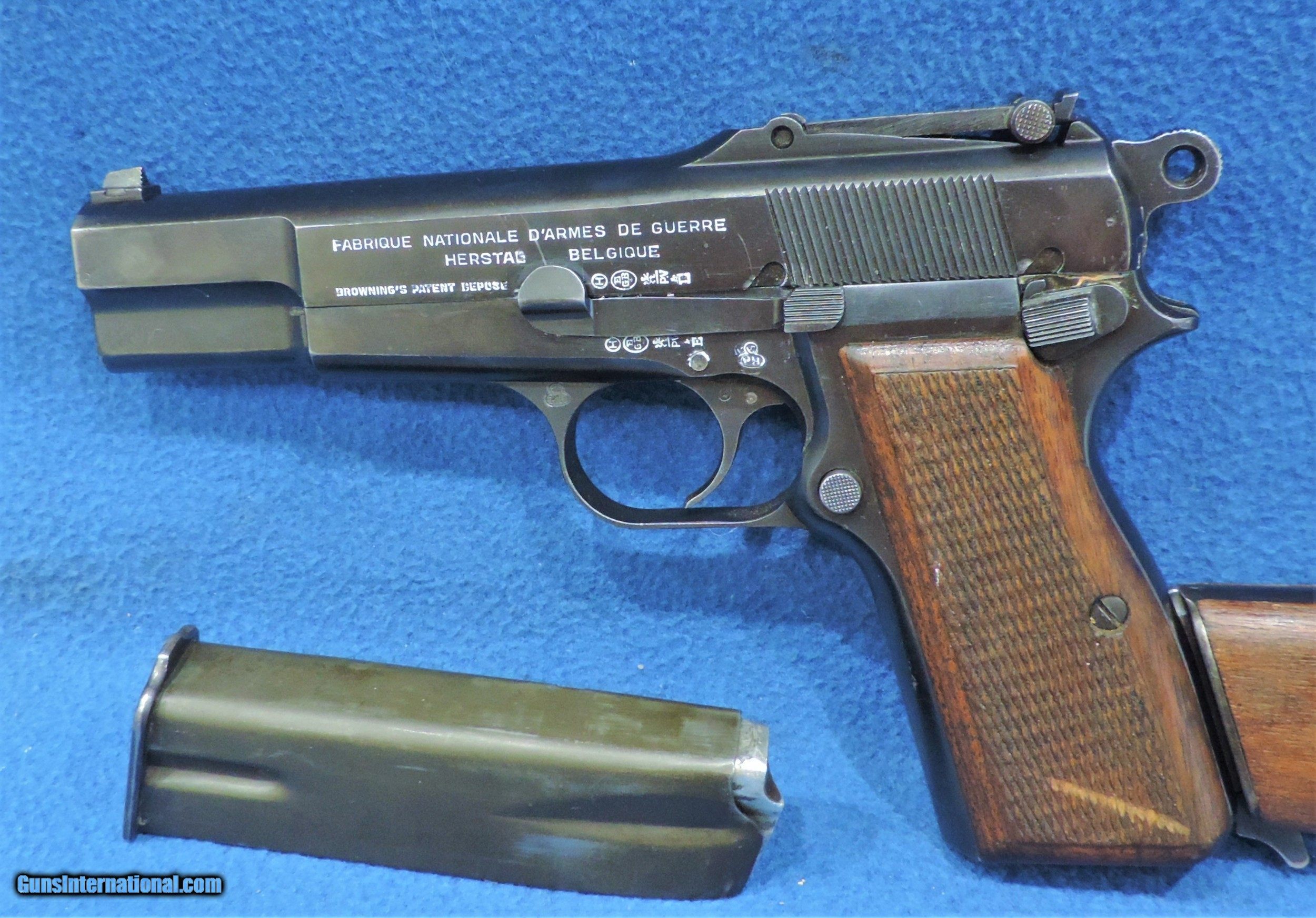 F.N. Browning (Pre War) Tangent Sight With Stock, P-35, Cal. 9 mm, Ser. 255XX.