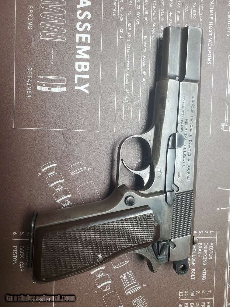 Description: Guns Listing ID: 594382 This is a World war two issued Belgium Hi-Power. It has multiple German stamps and all matching serial numbers. Condition shows patina and wear based on age and issue to military. Has no box and one magazine. Want to own a bit of history this could be the perfect match. SOLD Manufacturer: FABRICA NACIONAL DE ARMAS Model: Hi power Caliber Info: 9MM Condition: Used - Non-Certified Barrels: 5 BARREL Finish: BLUED |