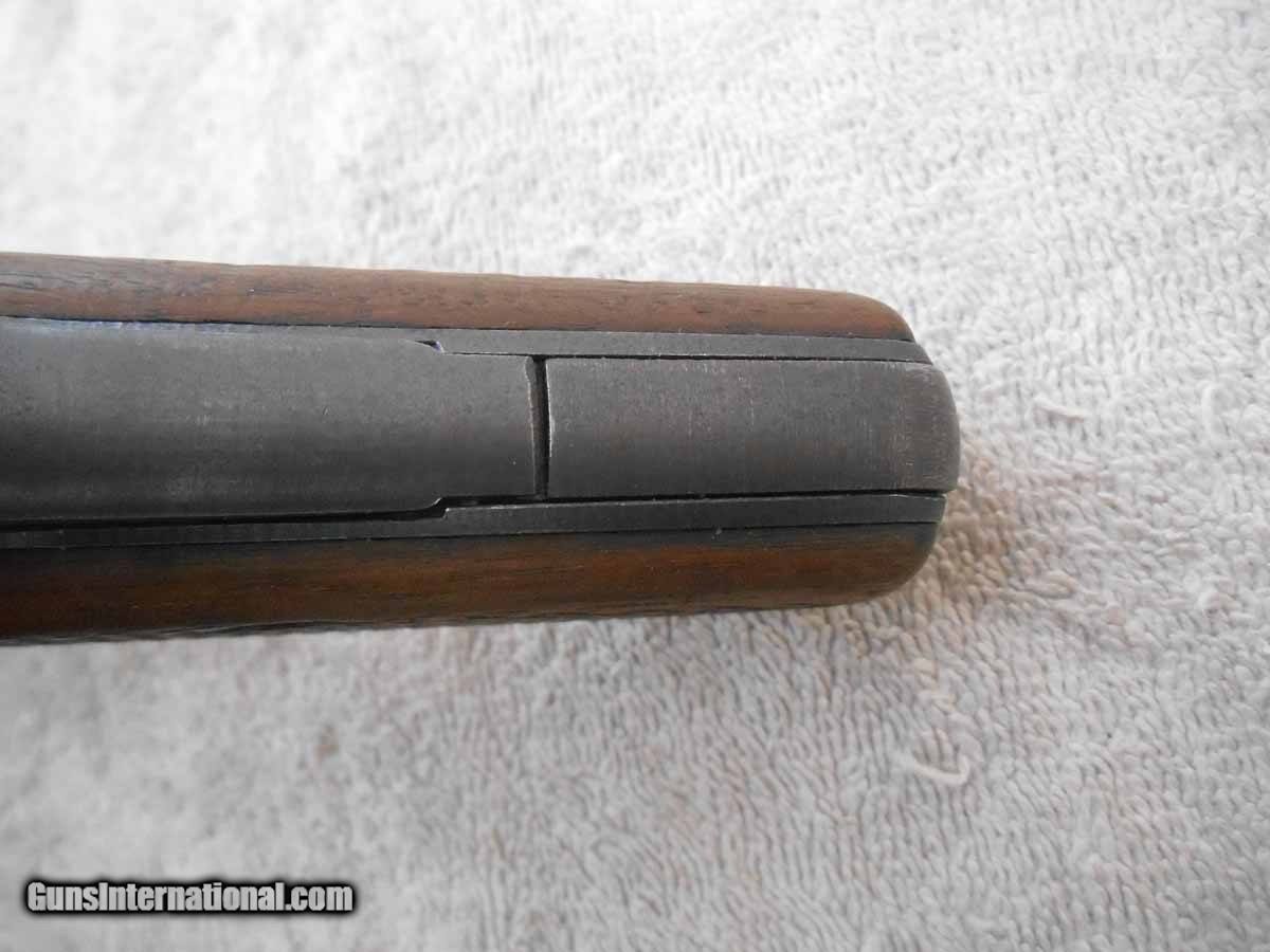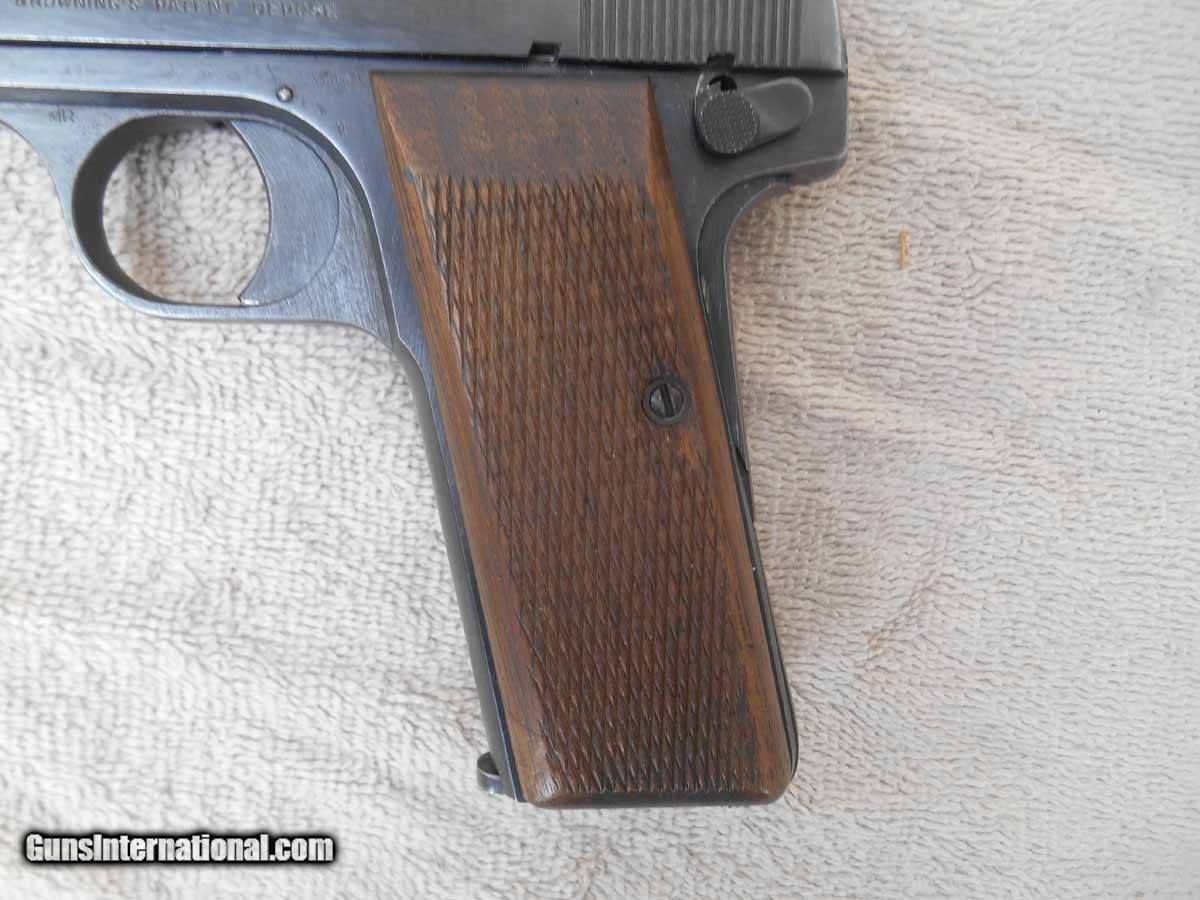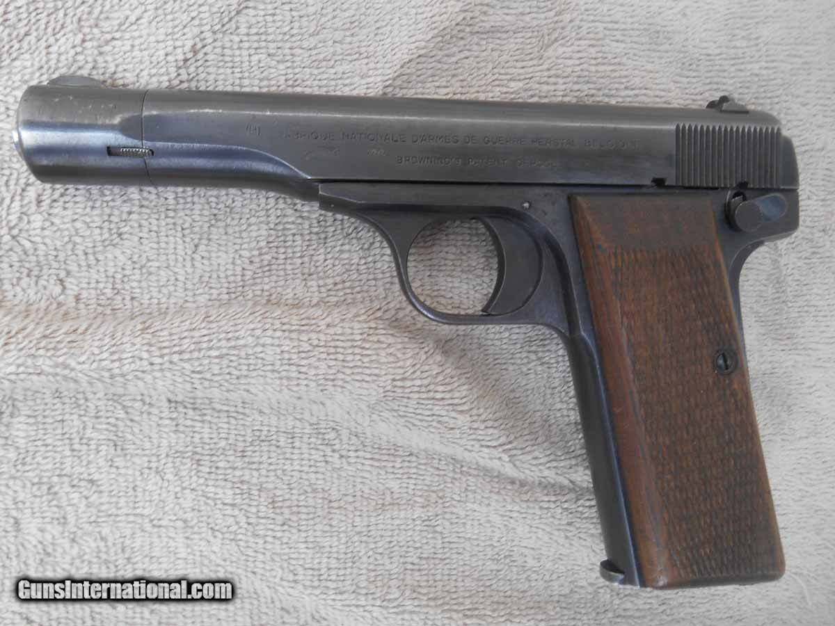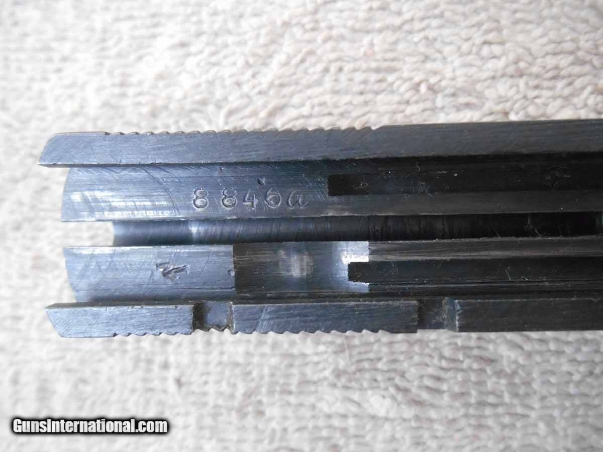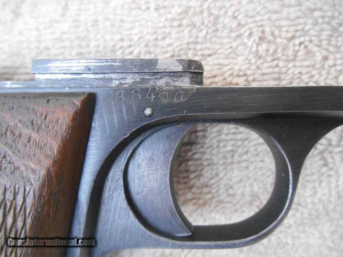 Description: NOTE: The holster that was previously offered with this pistol is from the Yugoslavian 1922 contract with FN and not of German manufacture, so it has been removed from this listing and is not included in the price.. This pistol is a very good example of the FN M1922 pistol that was made in Belgium by German occupation forces and issued to officials and soldiers, and especially to the Luftwaffe, of the Third Reich. The pistol comes with one magazine with the FN logo on it. The pistol retains a good 90% of its original blued finish, with only minimal handling marks on and near the slide extension, as expected by the need to disassemble the firearm for cleaning. The wood grips are in excellent condition and the bore is bright with sharp rifling, as expected in a seldom used firearm. The serial numbers match on the frame, barrel, on the slide extension, and inside the slide. I have disassembled the firearm and its function is excellent, with the safety, grip safety, magazine safety, trigger, sear, and striker doing exactly what they are supposed to do. Eagle/swastika marks appear on the barrel, as visible in the ejection port, and on the left side of the frame and slide. WaA/Eagle/140 marks also appear on the left side of the frame and slide. As always, it is recommended that a qualified gusmith inspect used guns before firing. German manufacturing during the occupation is seldom seen in the condition this pistol is in, making it an excelent candidate for a quality collection. FFL required. Buyer to pay shipping and insurance. Payment in the form of USPS money order or Cashier's Check, please. A 3 day inspection and return is allowed, as long as the pistol is returned, unfired and un-disassembled in exactly the same condition it was shipped to the buyer in, and all parts present. Please review the photos as they are an integral part of the description. Thanks for looking. SOLD Curio/Relic: Yes Handgun Caliber: .32 ACP (7.65x17mm Browning SR) Manufacturer: Fabrique Nationale (FN) Model: 1922 Serial Number: 8846a Barrel Length: 4.5 inches Condition: Very Good to Exc. Metal Condition: Very Good to Exc. Wood Condition: Excellent Bore Condition: Excellent Manufacture Date: 1943 |