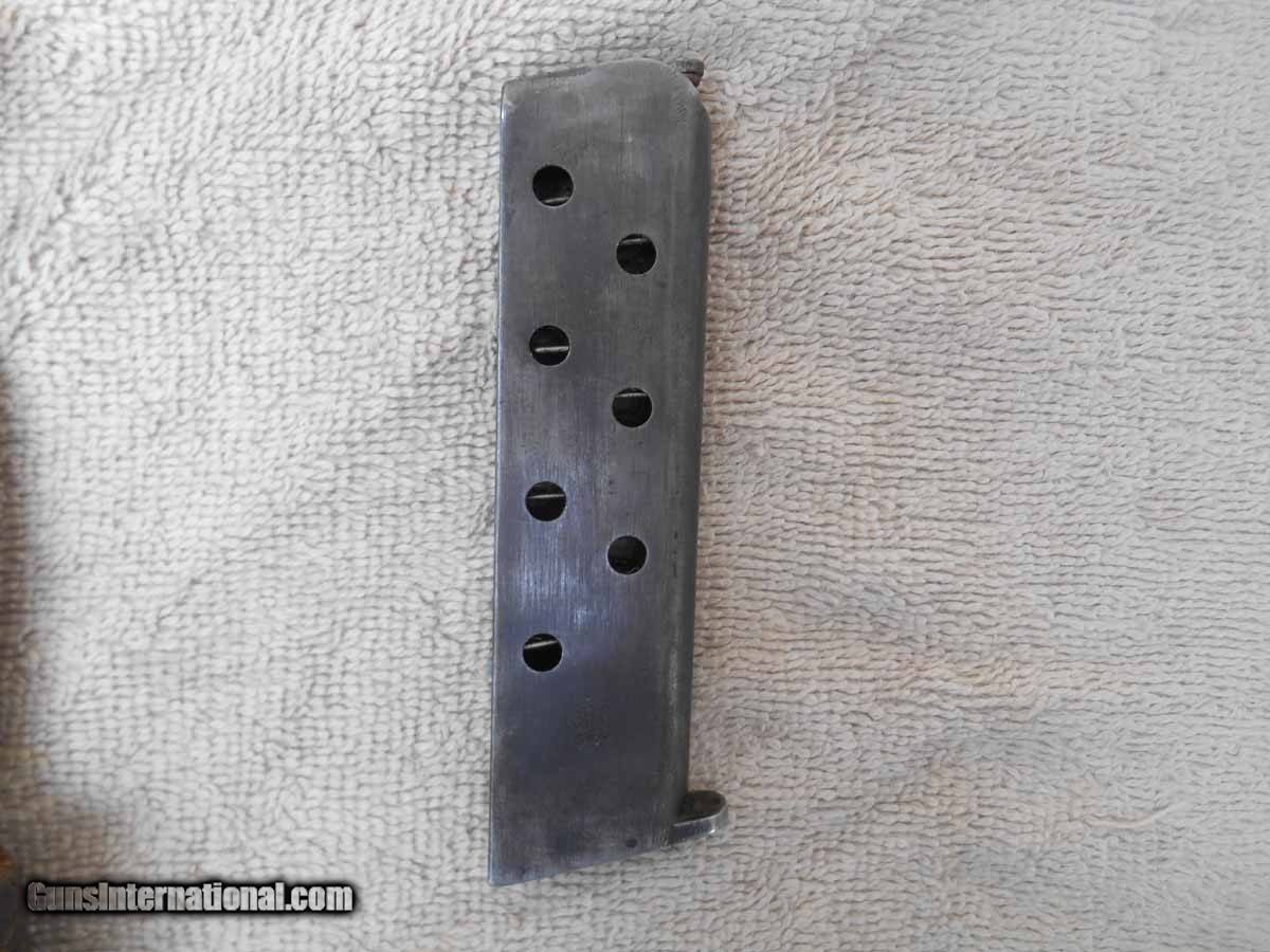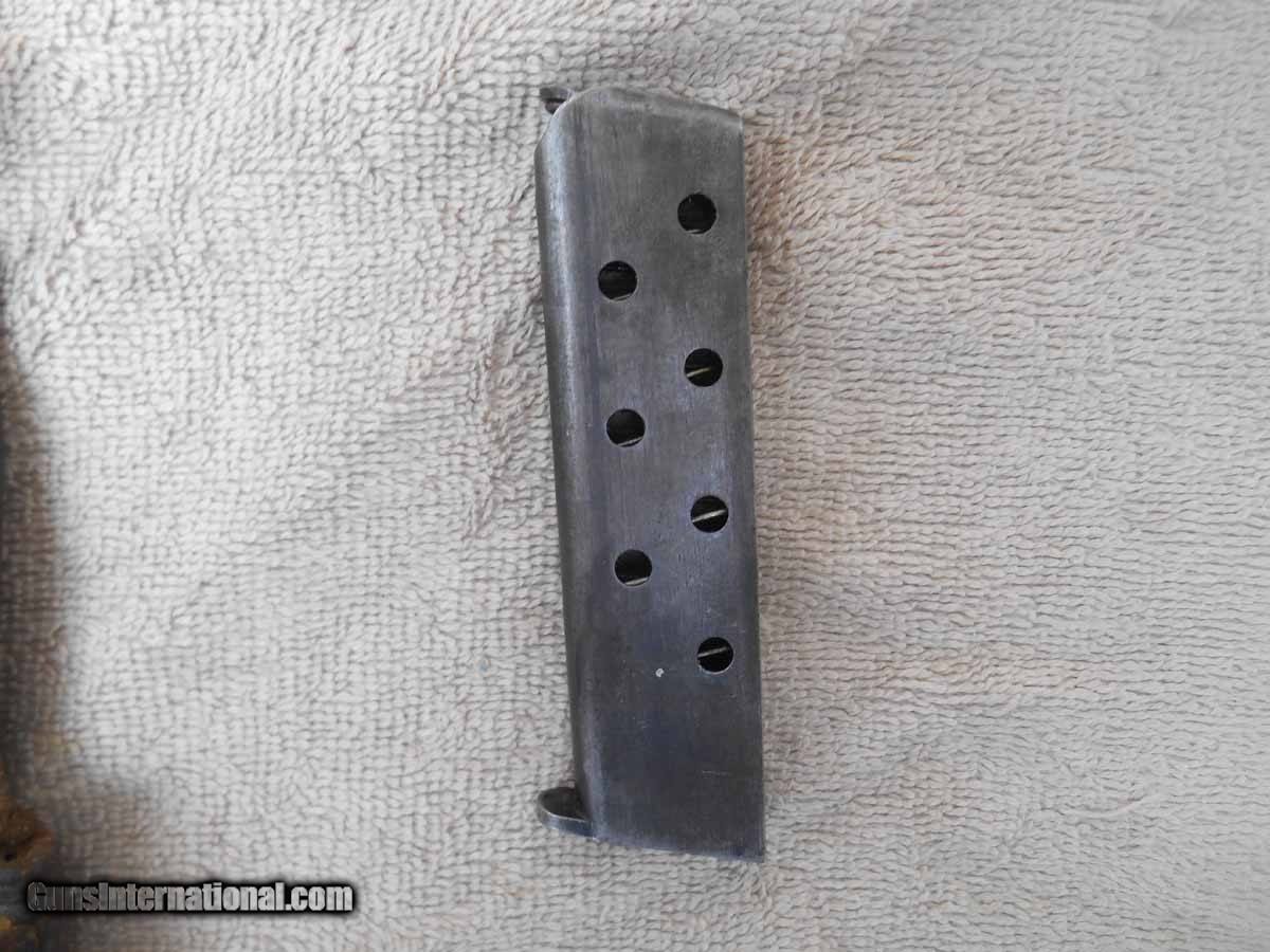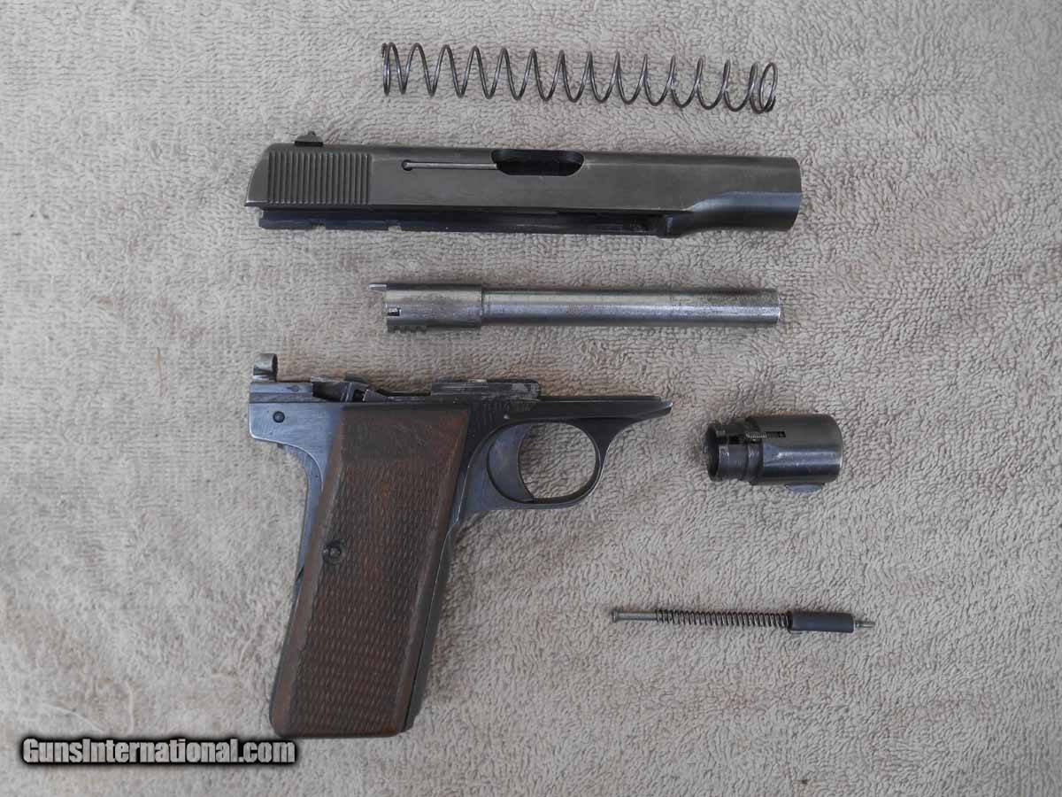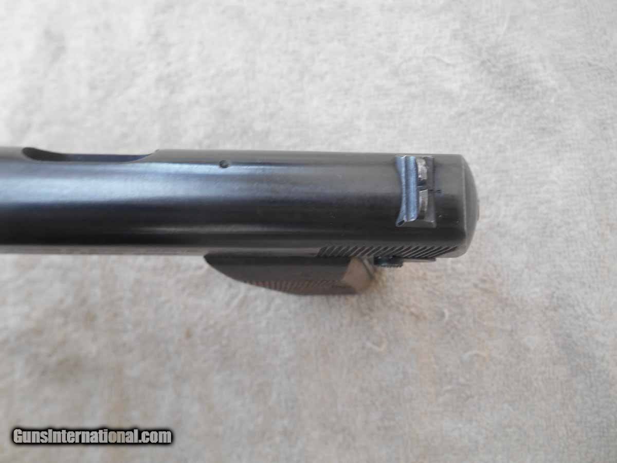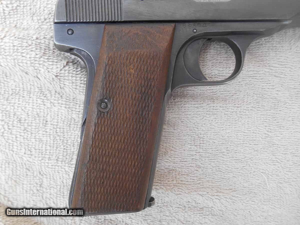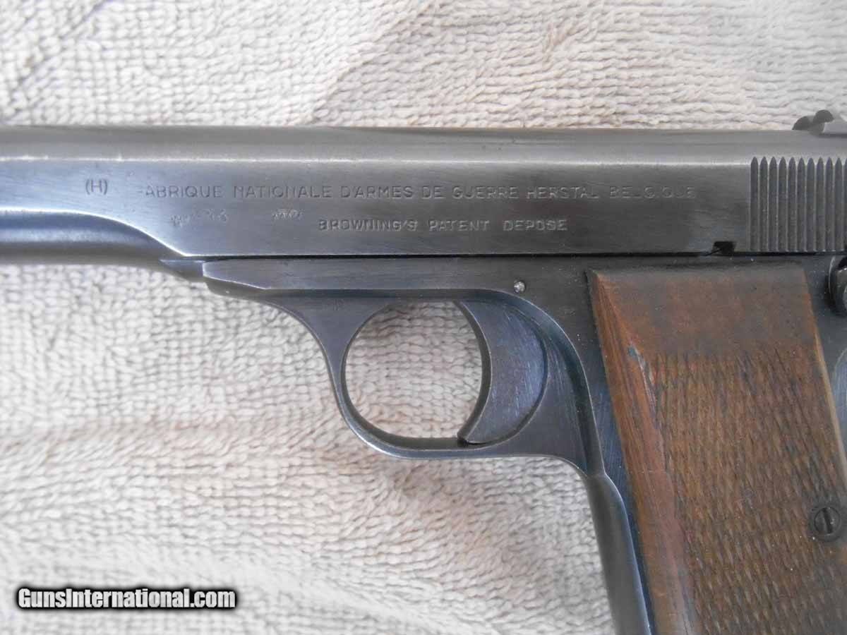 Description: NOTE: The holster that was previously offered with this pistol is from the Yugoslavian 1922 contract with FN and not of German manufacture, so it has been removed from this listing and is not included in the price.. This pistol is a very good example of the FN M1922 pistol that was made in Belgium by German occupation forces and issued to officials and soldiers, and especially to the Luftwaffe, of the Third Reich. The pistol comes with one magazine with the FN logo on it. The pistol retains a good 90% of its original blued finish, with only minimal handling marks on and near the slide extension, as expected by the need to disassemble the firearm for cleaning. The wood grips are in excellent condition and the bore is bright with sharp rifling, as expected in a seldom used firearm. The serial numbers match on the frame, barrel, on the slide extension, and inside the slide. I have disassembled the firearm and its function is excellent, with the safety, grip safety, magazine safety, trigger, sear, and striker doing exactly what they are supposed to do. Eagle/swastika marks appear on the barrel, as visible in the ejection port, and on the left side of the frame and slide. WaA/Eagle/140 marks also appear on the left side of the frame and slide. As always, it is recommended that a qualified gusmith inspect used guns before firing. German manufacturing during the occupation is seldom seen in the condition this pistol is in, making it an excelent candidate for a quality collection. FFL required. Buyer to pay shipping and insurance. Payment in the form of USPS money order or Cashier's Check, please. A 3 day inspection and return is allowed, as long as the pistol is returned, unfired and un-disassembled in exactly the same condition it was shipped to the buyer in, and all parts present. Please review the photos as they are an integral part of the description. Thanks for looking. SOLD Curio/Relic: Yes Handgun Caliber: .32 ACP (7.65x17mm Browning SR) Manufacturer: Fabrique Nationale (FN) Model: 1922 Serial Number: 8846a Barrel Length: 4.5 inches Condition: Very Good to Exc. Metal Condition: Very Good to Exc. Wood Condition: Excellent Bore Condition: Excellent Manufacture Date: 1943 |