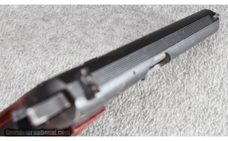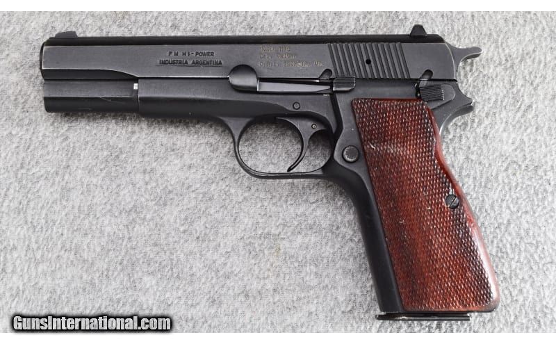 Description: This FM Hi-Power is stamped "Industria Argentina" and was imported by CAI. Gun remains in very good overall condition showing only light use. Blue shows some holster wear and blue wear on high spots. There are some scratches on top right side of slide with some on backstrap of gun as well. Grips remains solid with some light wear and discoloration from sweat. Bore is bright and excellent. All serial numbers are matching. 9mm Parabellum SOLD Metal Condition: Very Good Wood Condition: Very Good Bore Condition: Excellent Barrels: 4 3/4 Triggers: Factory Butt Pad: Checkered Walnut Grips Weight: 36 Oz Sights: Three White Dot System Item Location: Wheeling |