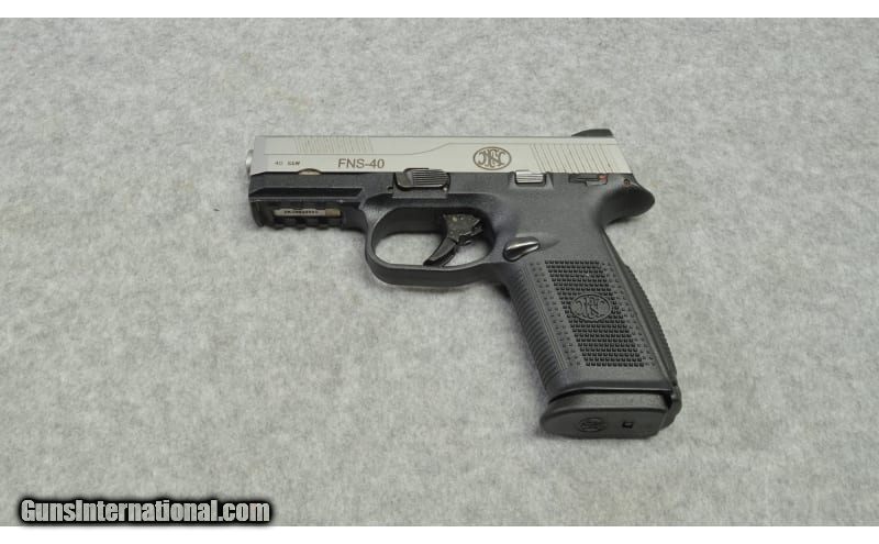 Description: For your consideration, the FN FNS-40 semi-auto pistol chambered in .40 S&W. The FNS-40 is double-action striker fired with ambidextrous controls. The magazine release can be changed for right or left-handed shooters. It also has a standard mil-1913 under barrel rail for lights or laser accessories. .40 S&W SOLD Metal Condition: Very Good Bore Condition: Very Good Barrels: 4 Inch Weight: 2 lbs Item Location: Centerville, OH |
