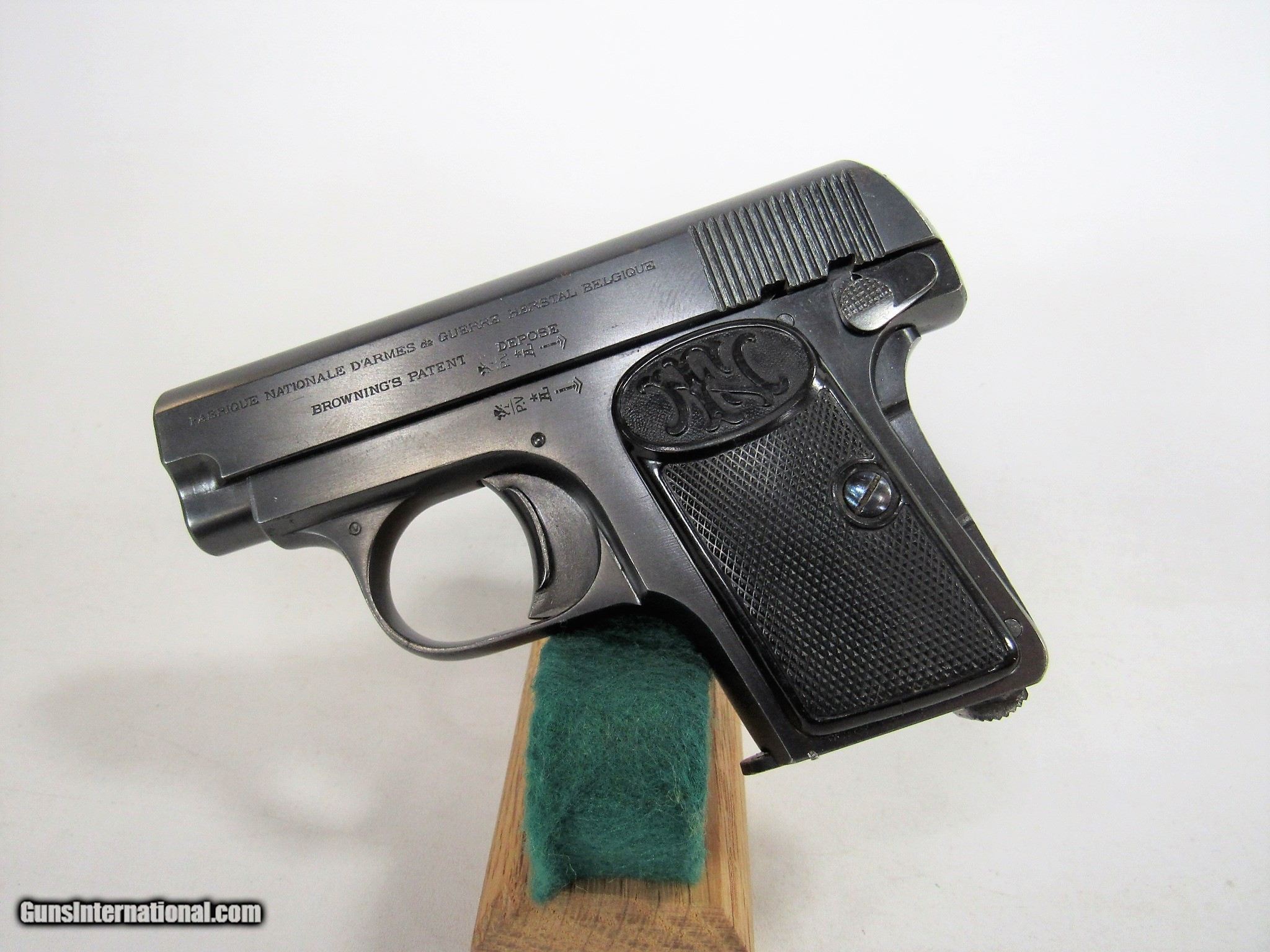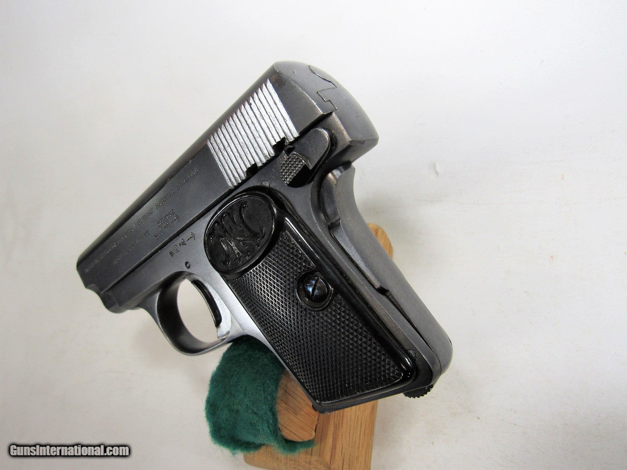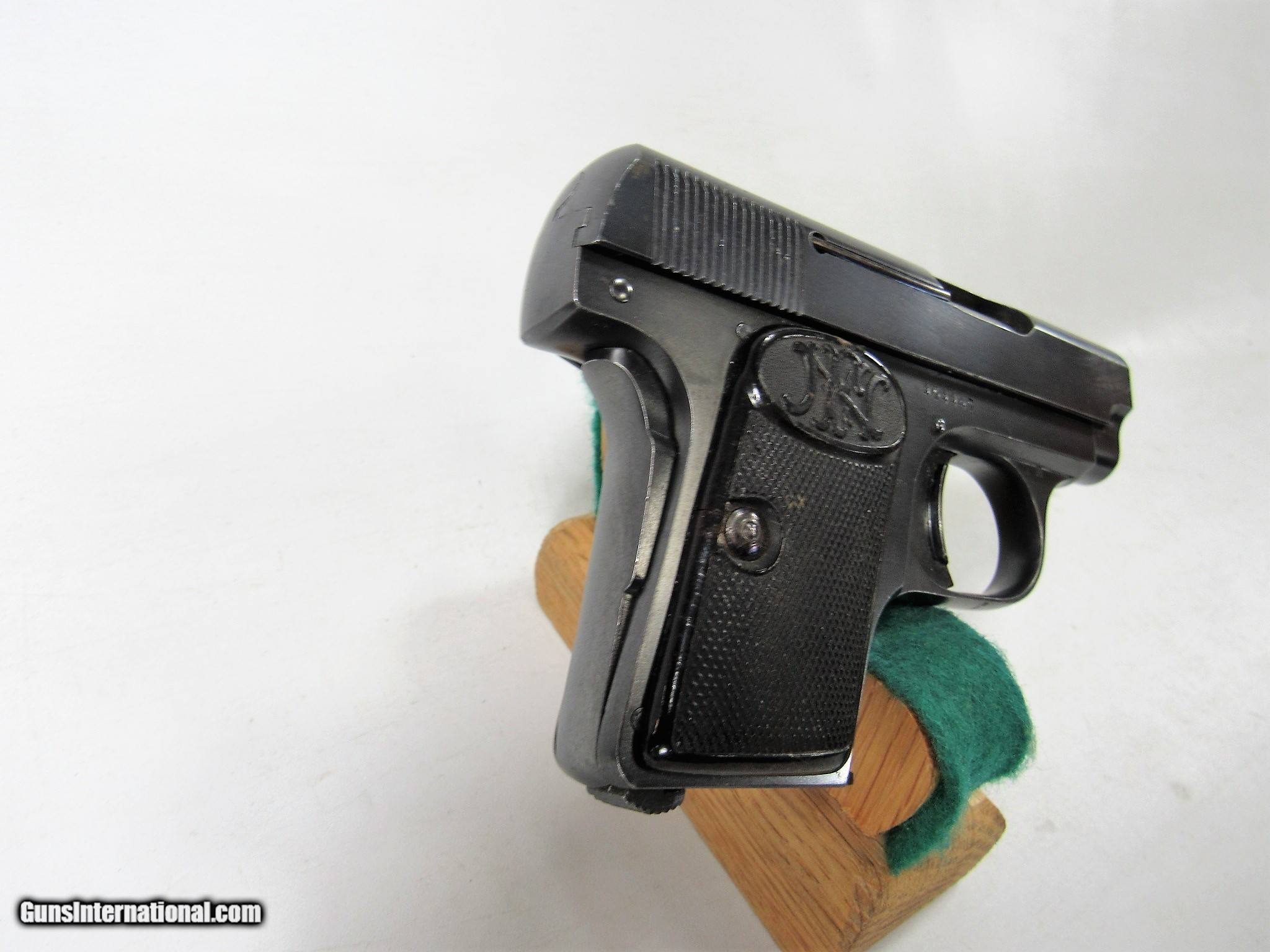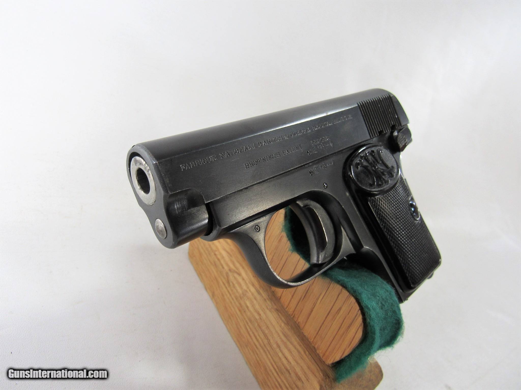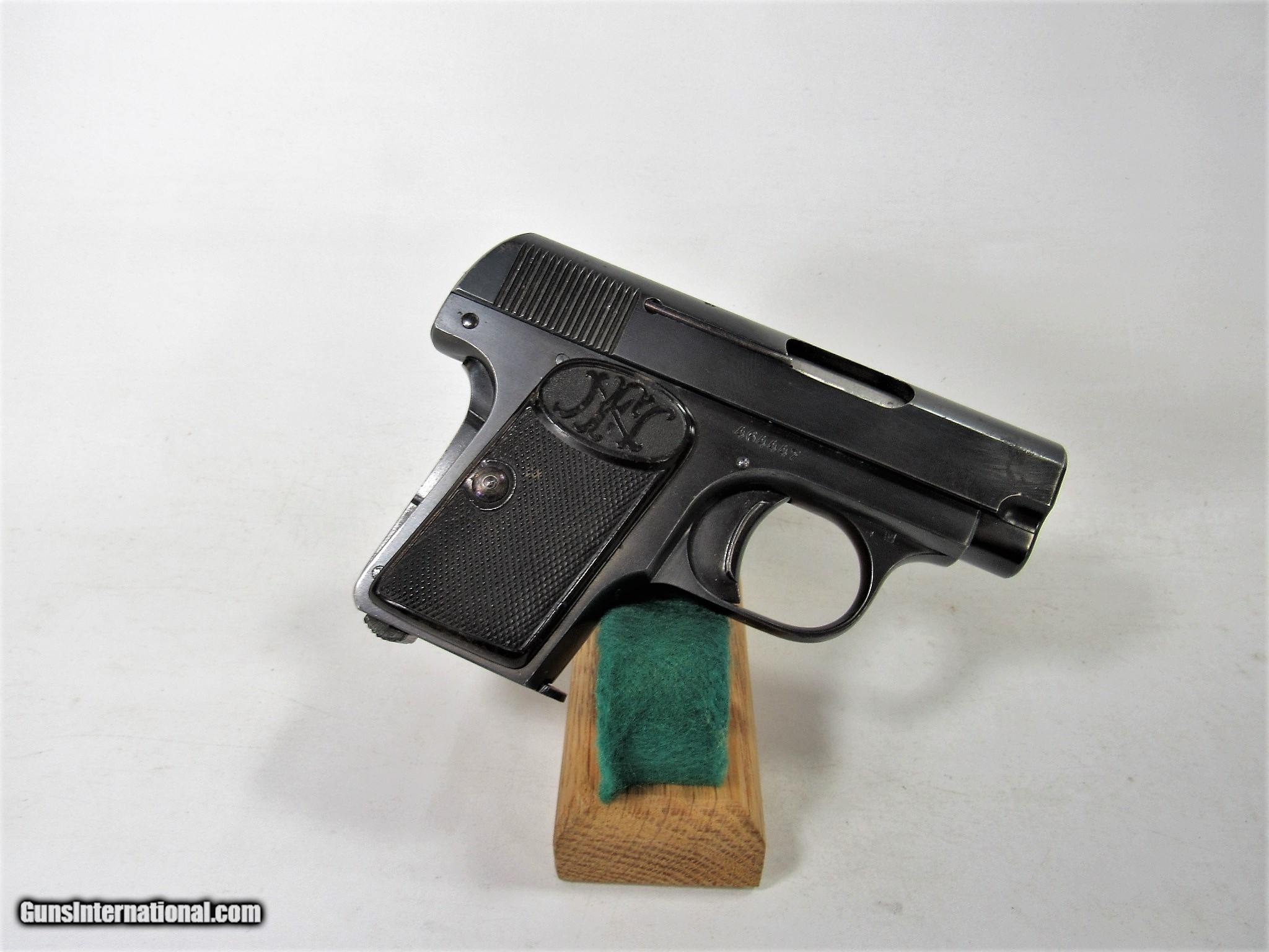Description: FN 1905 VEST POCKET 25ACP 2ND VARIATION. 97% WITH ONE SPOT OF LIGHT CORROSION. SOLD Curio/Relic: Yes Handgun Caliber: .25 ACP (6.35mm Browning, 6.35×16mmSR) |
