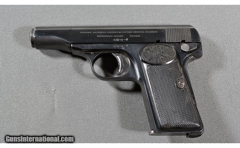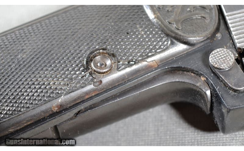 Description: An FN model 1910 chambered for 7.65mm or 32 ACP. The grip panel on the left side had a repair done sometime in its life. 7.65MM (.32 ACP) SOLD Barrels: 3 1/2 inches Item Location: Lacey, WA |