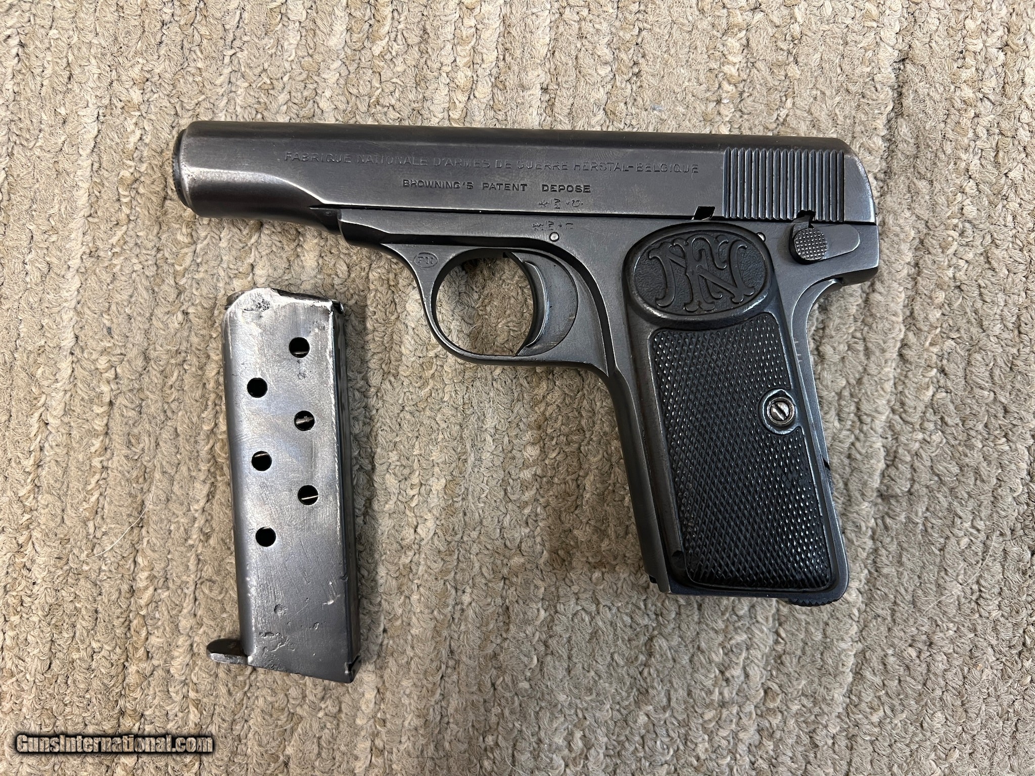 Description: Guns Listing ID: 1236261 This pistol has a 3.25in barrel with one 6rd magazine. The grip screw is broken on one side which is why the right grip is loose! SOLD Manufacturer: FN Model: 1910 Blued Caliber Info: .32 ACP Condition: Used - Non-Certified Barrels: 3.25 BARREL Finish: BLUED |