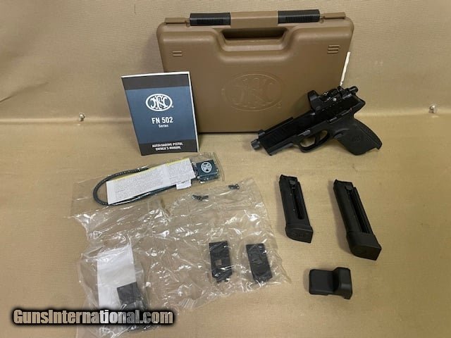 Description: Guns Listing ID: 463217 FN MODEL - 502 CALIBER - .22LR EXCELLENT CONDITION ORIGINAL CASE & MANUAL 2 MAGS 4.6\" BARREL OPTIC PLATES THREADED BARREL UTG OPTIC SOLD Manufacturer: FN Model: 502 Condition: Used - Non-Certified Barrels: 4.6 Gauge Info: .22 LR |