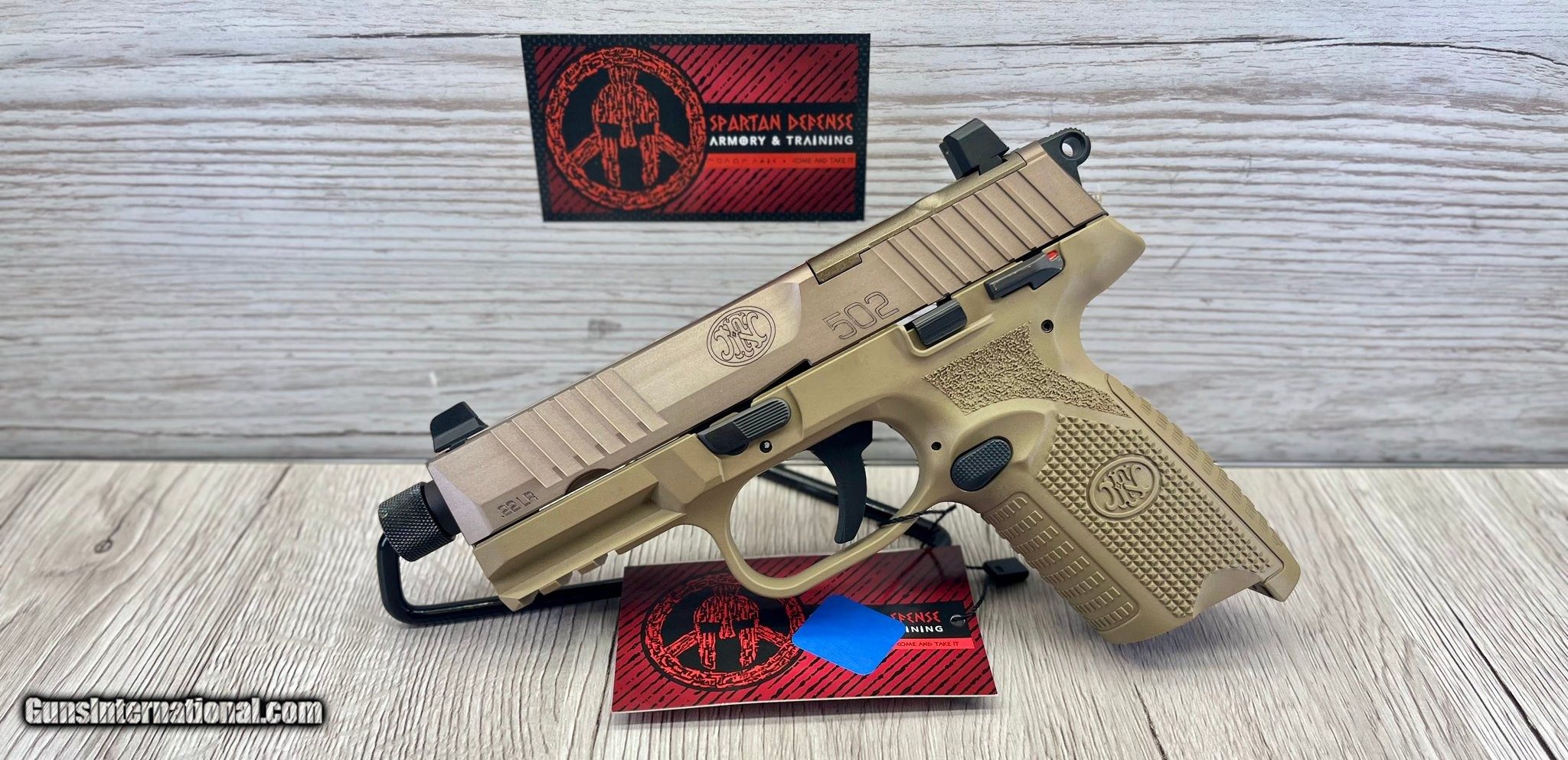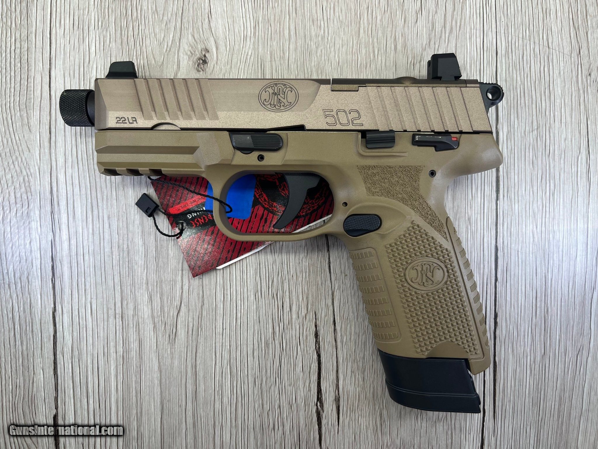 Description: Guns Listing ID: 174326 THIS IS A USED FN HERSTAL 502 TACTICAL THREADED BARREL COMES WITH 1X 10 ROUND MAG AND 1X 15 ROUND MAGS AND ORIGINAL CASE The FN 502 Tactical isn‚t just the first .22 LR from FN, its the industry‚s first slide-mounted, optics-ready rimfire handgun. Designed for maximum fun, FNs hammer-fired .22 LR delivers more accuracy and versatility than any other rimfire. Mounting a favorite red dot optic and cycling a wide range of .22 LR ammo makes a low-cost range day a high-end experience. Inspired by FN‚s patented Low-Profile Optics Mounting System, the FN 502 Tactical offers unmatched sighting options and co-witness front and rear sights align perfectly with your dot. The superior ergonomics, proven balance and ambidextrous controls, all a nod to the FN 502‚s bigger brother, the FN 509, make it perfect for high round count training sessions. Like a robust target-style rimfire pistol, the design of the FN 502 Tactical delivers faster, more accurate shots on target from a modern, optics-ready tactical pistol. Caliber 22 LR Barrel Length Range 4\" to 4.99\" Capacity 10+1 Action SAO Frame Finish Flat Dark Earth OAL 7.60\" Frame Material Polymer Hand Right Sight Style Fixed Slide Finish Flat Dark Earth Slide Material Steel Slide Description Optic Ready / Serrated Grips FDE Textured Polymer Sight Configuration Fixed Includes 2 Magazines Safety Manual Thumb Barrel Description Steel Threaded Barrel Length 4.60\" Max Capacity 15 Weight 23.70 oz Frame Description Polymer Frame w / Picatinny Raild Manufacturer: FN Model: 502 TACTICAL Caliber Info: .22 LR Condition: Used - Non-Certified Barrels: 4.6" BARREL Action: SEMI AUTOMATIC Finish: FDE Weight: 1.4 lbs. Price: $419.99 Contact Seller |