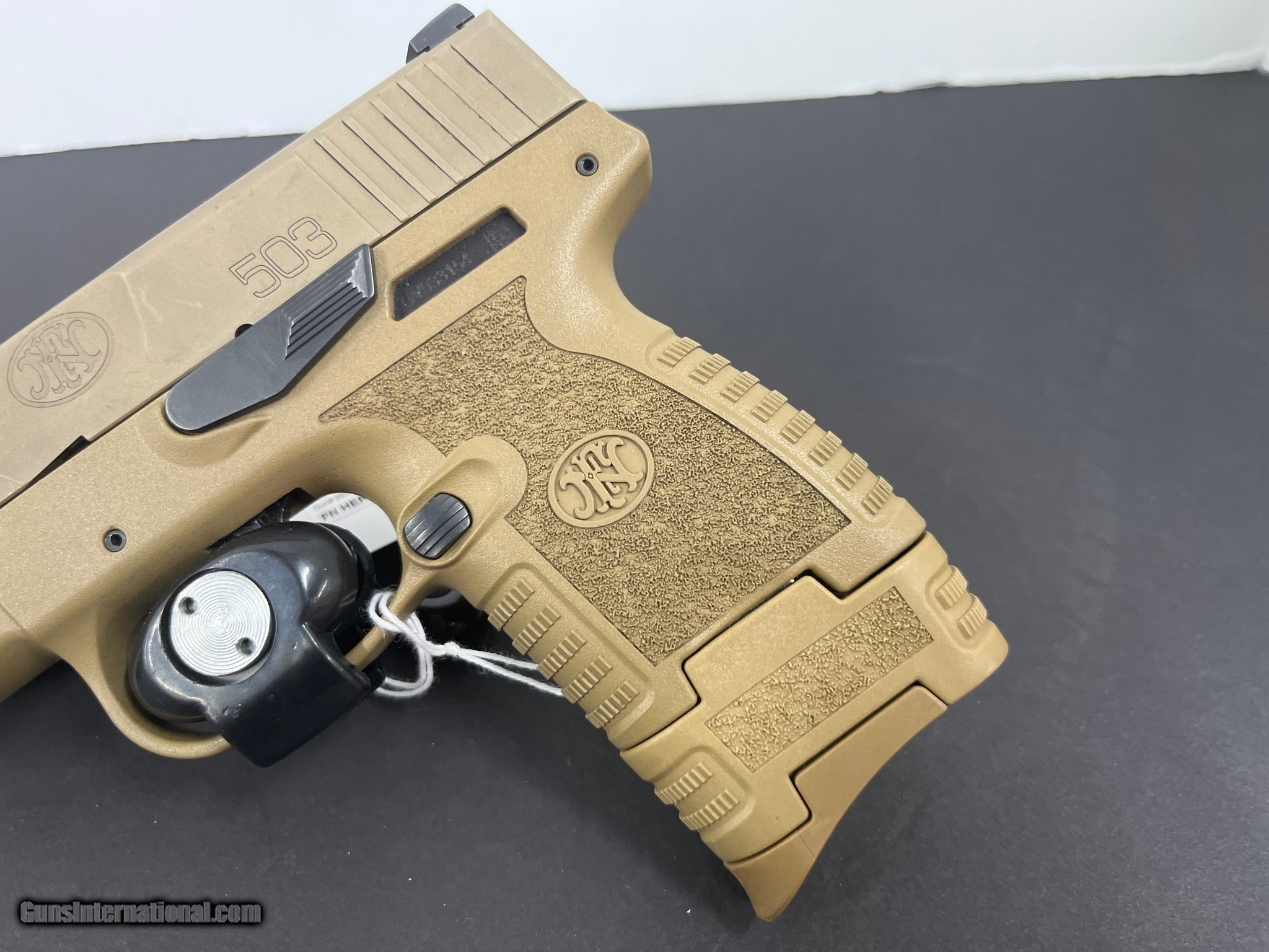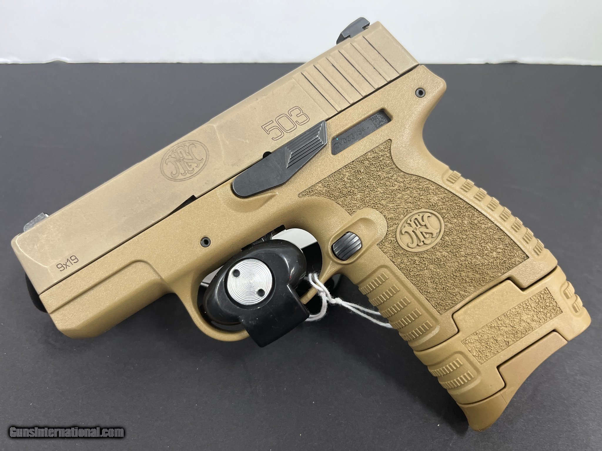Description: Guns Listing ID: 1274929 Light scuffs on slide SOLD Manufacturer: FN Model: 503 Caliber Info: 9MM LUGER (9X19 PARA) Condition: Used - Non-Certified Barrels: 3 BARREL Finish: TAN |
