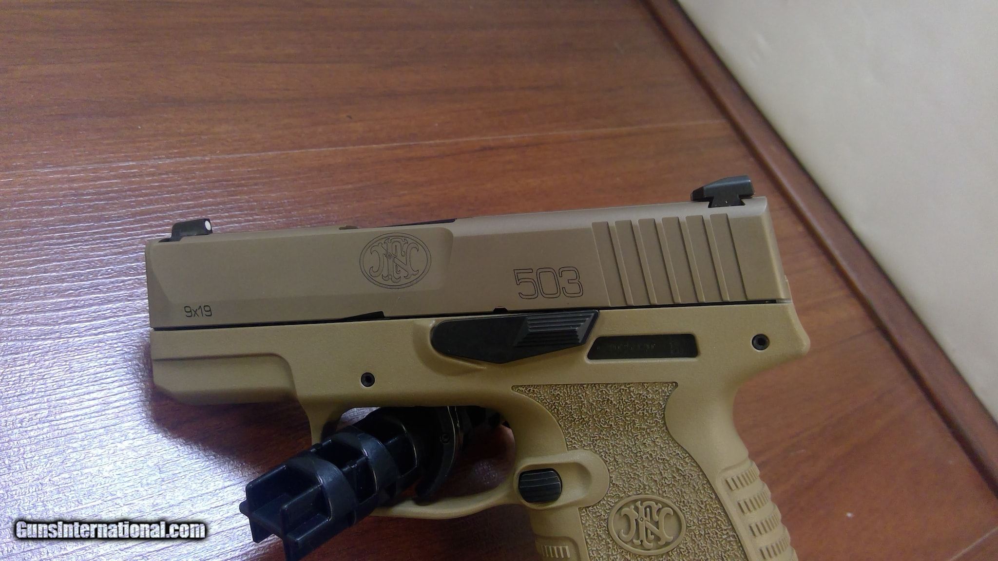 Description: Guns Listing ID: 506286 Comes with soft case and 1 mag Overall great shape SOLD Manufacturer: FN Model: 503 Caliber Info: 9X19 Condition: Used - Non-Certified Barrels: 3.1 BARREL Finish: FDE |