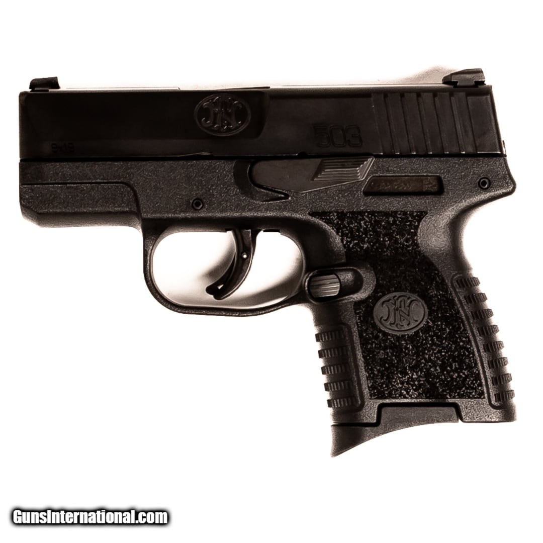 Description: Guns Listing ID: 842973 Introduced in 2020, the FN 503 is a semi-automatic pistol made for concealed carry. It sports a rugged look, sure gripping surfaces, and a slim profile. This 503 is in excellent condition! Purchase includes the original box, manual, one 6-round magazine, one 8-round magazine, and a right-handed IWB BSG holster. Get the best bang for your buck when you get a Certified Used Firearm . When you see the Certified Used stamp on any of our firearms, you can be confident that you’re getting exactly what you want – a gun only in very good to excellent condition and held to the highest quality standard. All Certified Used Guns come with a ‘no questions asked’ return policy . PLUS, ALL CERTIFIED USED GUNS SHIP FREE! SOLD Manufacturer: FN Model: 503 Caliber Info: 9MM LUGER (9X19 PARA) Condition: Used - Certified Barrels: 3 BARREL Finish: BLACK |