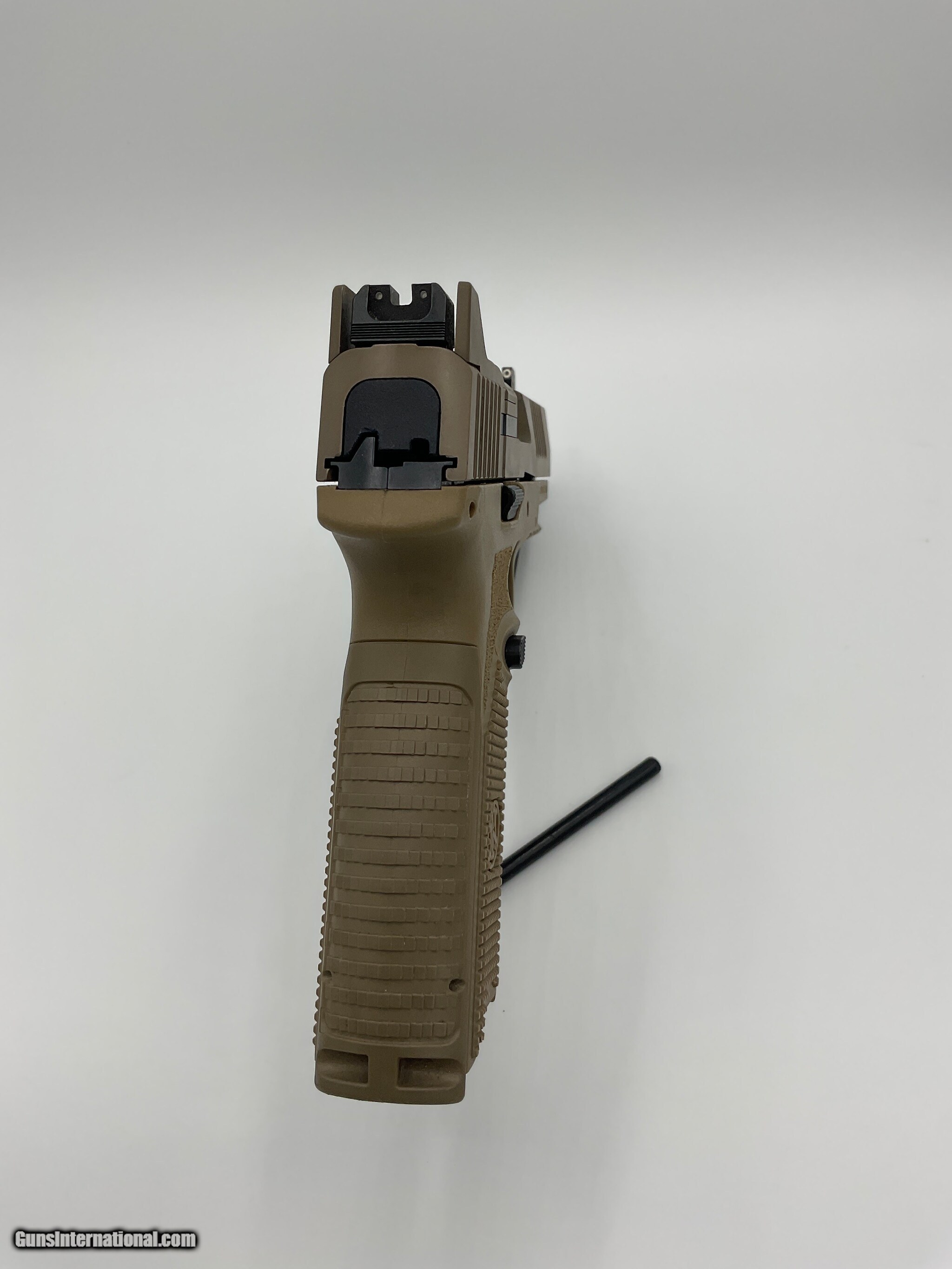 Description: Guns Listing ID: 881771 The FN 509 Tactical 9mm Pistol is built with a cold hammer-forged stainless-steel threaded barrel with a recessed target crown and a polished chamber and feed ramp. The firearm also features an enhanced grip texture, as well as a fully ambidextrous slide stop lever and magazine release. MTSEOST / EMM / LR SOLD Manufacturer: FN Model: 509 Caliber Info: 9 X 19 Condition: Used - Non-Certified Barrels: 4 BARREL Finish: BROWN AND BLACK |