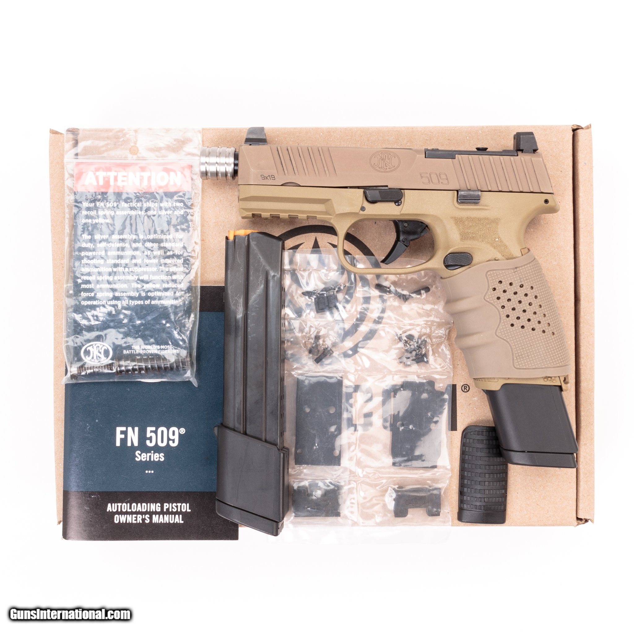 Description: Guns Listing ID: 1358644 This 509 features a rubber grip sleeve, threaded barrel with an aftermarket thread protector, and suppressor height night sights. This model is optic-ready with an optics plate kit. The owner‚‚s manual, two 24-round magazines, and a backstrap are included. Get the best bang for your buck when you get a Certified Used Firearm . When you see the Certified Used stamp on any of our firearms, you can be confident that you‚‚re getting exactly what you want – a gun only in very good to excellent condition and held to the highest quality standard. All Certified Used Guns come with a ‚‚no questions asked‚‚ return policy . PLUS, ALL CERTIFIED USED GUNS SHIP F SOLD Manufacturer: FN Model: 509 Caliber Info: 9MM LUGER (9X19 PARA) Condition: Used - Non-Certified Barrels: 4.5 BARREL Finish: FDE |