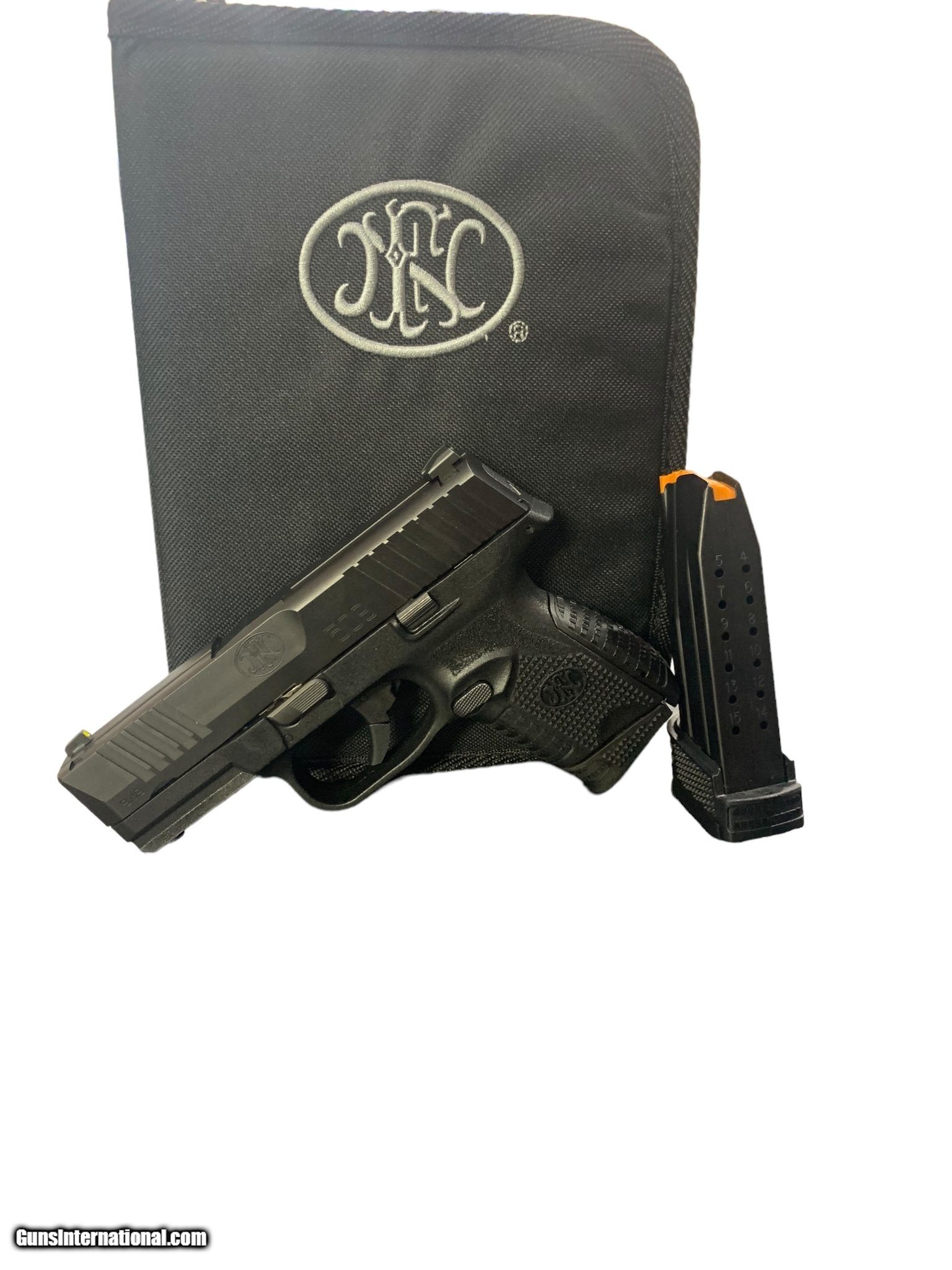 Description: Guns Listing ID: 1284964 This is a pre-owned pistol FN 509 9X19 it comes with it‚‚s original case and 1mag 15 round and 1 mag 12 round and the condition it‚‚s just the ways is on the pictures.. SPECS CALIBER: 9mm OPERATION: Double-action MAG CAPACITY: 12 or 15 Rd. WEIGHT: 25.5 oz. BARREL LENGTH: 3.7\" OVERALL LENGTH: 6.8\" TWIST RATE: 1:10\" RH HEIGHT: 5.2\" / 4.8\" WIDTH: 1.35\" TRIGGER PULL: 5.5 - 7.7 lb. SIGHT RADIUS: 5.6\" PRIMARY FEATURES Full-sized performance in a concealed carry package Striker-fired autoloader Double-action operation Fully ambidextrous controls FN Low Profile Optics Mounting System with plate adapters for direct mounting of more than 10 optics All-black co-witness iron sights SLIDE Easily racked, combat-style sights External extractor; loaded chamber indicator Improved front and rear cocking serrations BARREL Cold hammer-forged stainless steel Recessed target crown Polished chamber and feed ramp FRAME Polymer construction with replaceable steel frame rails Shortened grip for easier concealment Enhanced grip textures which enables faster follow-up shots in all conditions Interchangeable backstraps OPERATING CONTROLS Fully ambidextrous slide stop lever and magazine release MAGAZINE High visibility, low-friction follower; polymer base with black finish Comes with one 12-round and one 15-round magazine 0453821-UTE- SOLD Manufacturer: FN Model: 509 Caliber Info: 9MM LUGER (9X19 PARA) Condition: Used - Non-Certified Barrels: 3.7 BARREL Finish: POLYMER |