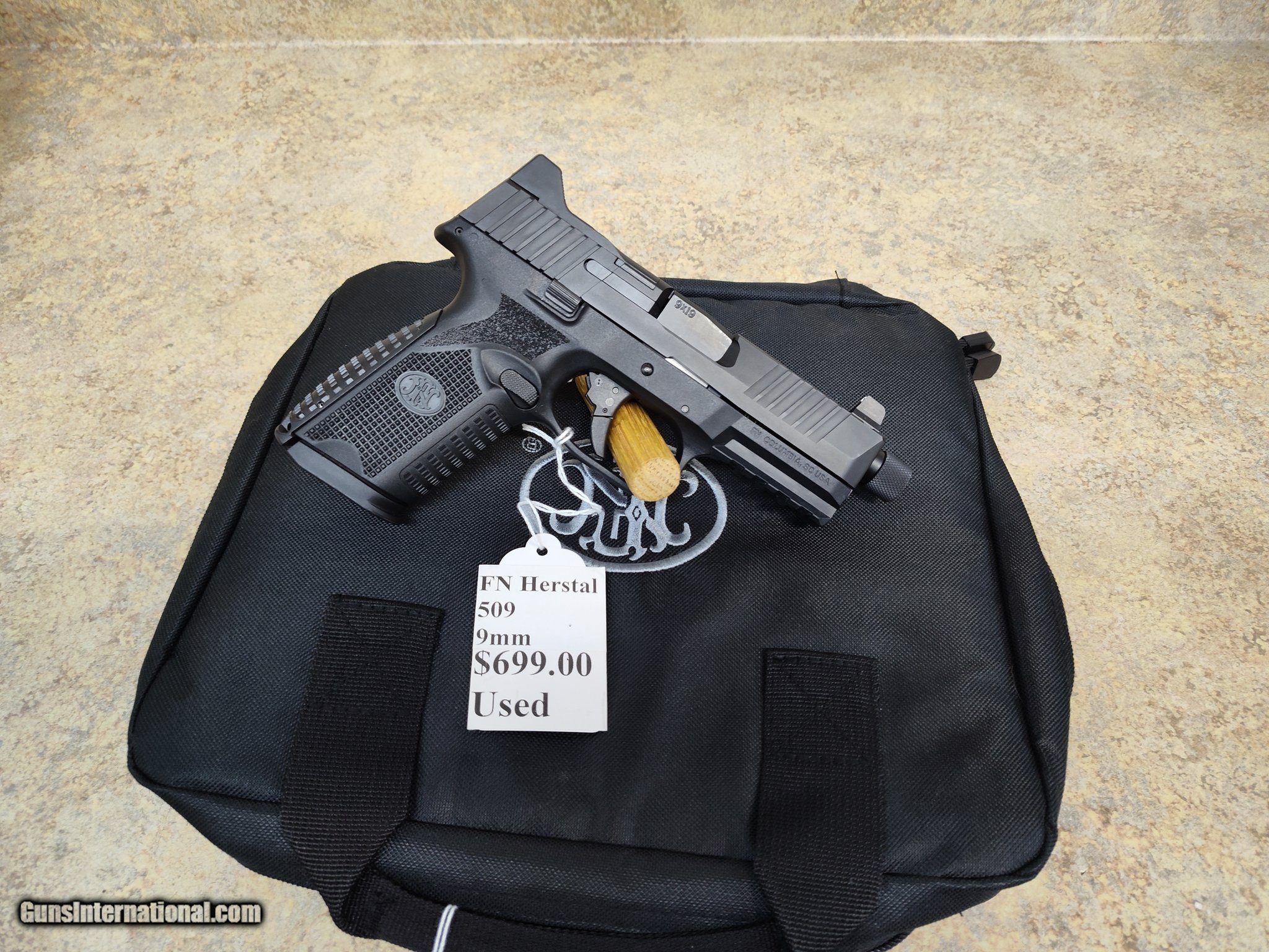 Description: Guns Listing ID: 398368 Blued with two magazines. looked to have been used very little. Optics ready. Has mounting hardware for optics included. SOLD Manufacturer: FN Model: 509 Caliber Info: 9MM LUGER (9X19 PARA) Condition: Used - Non-Certified Barrels: 5 BARREL Action: SEMI AUTOMATIC Finish: BLUED Weight: not specified |