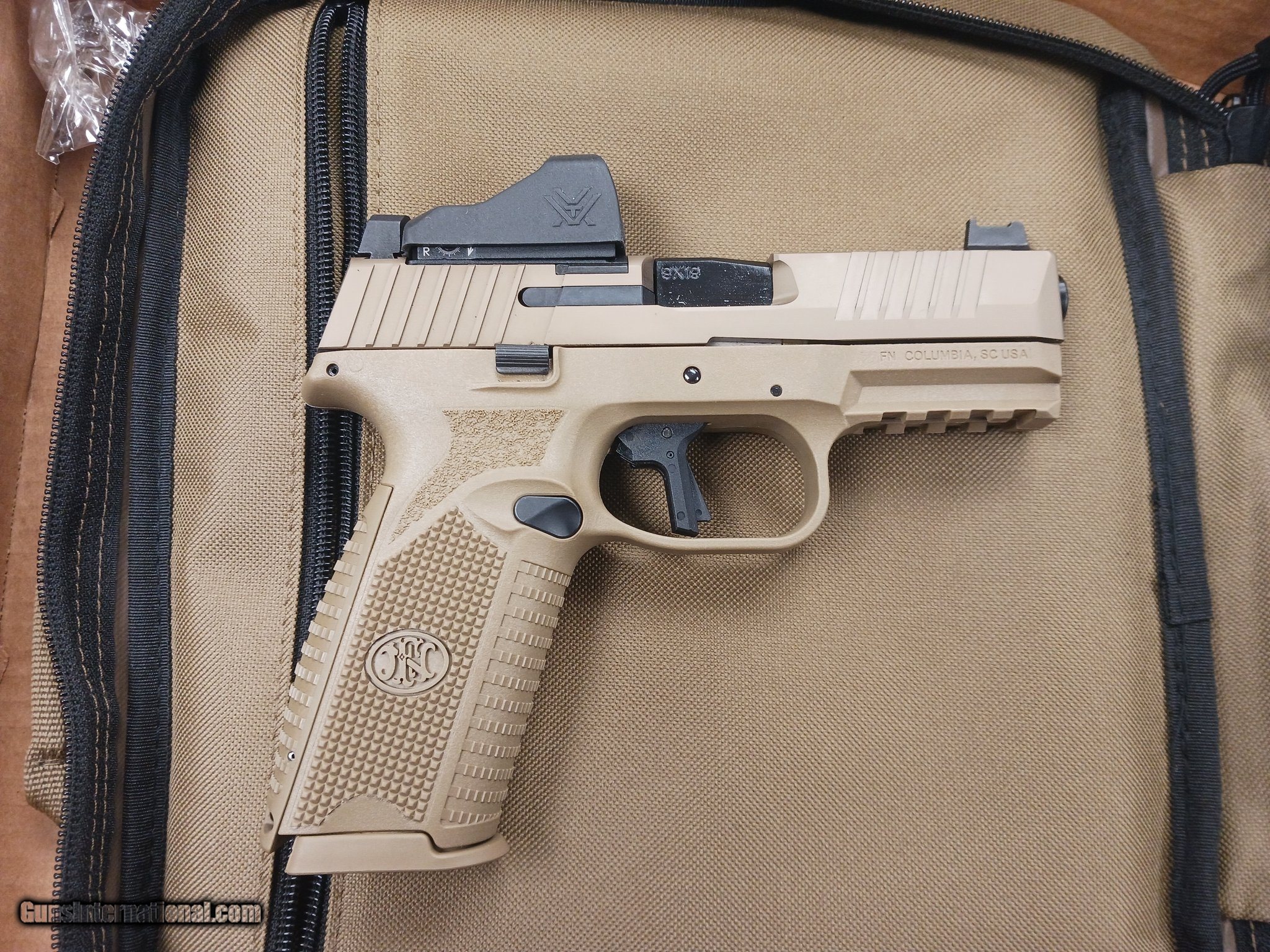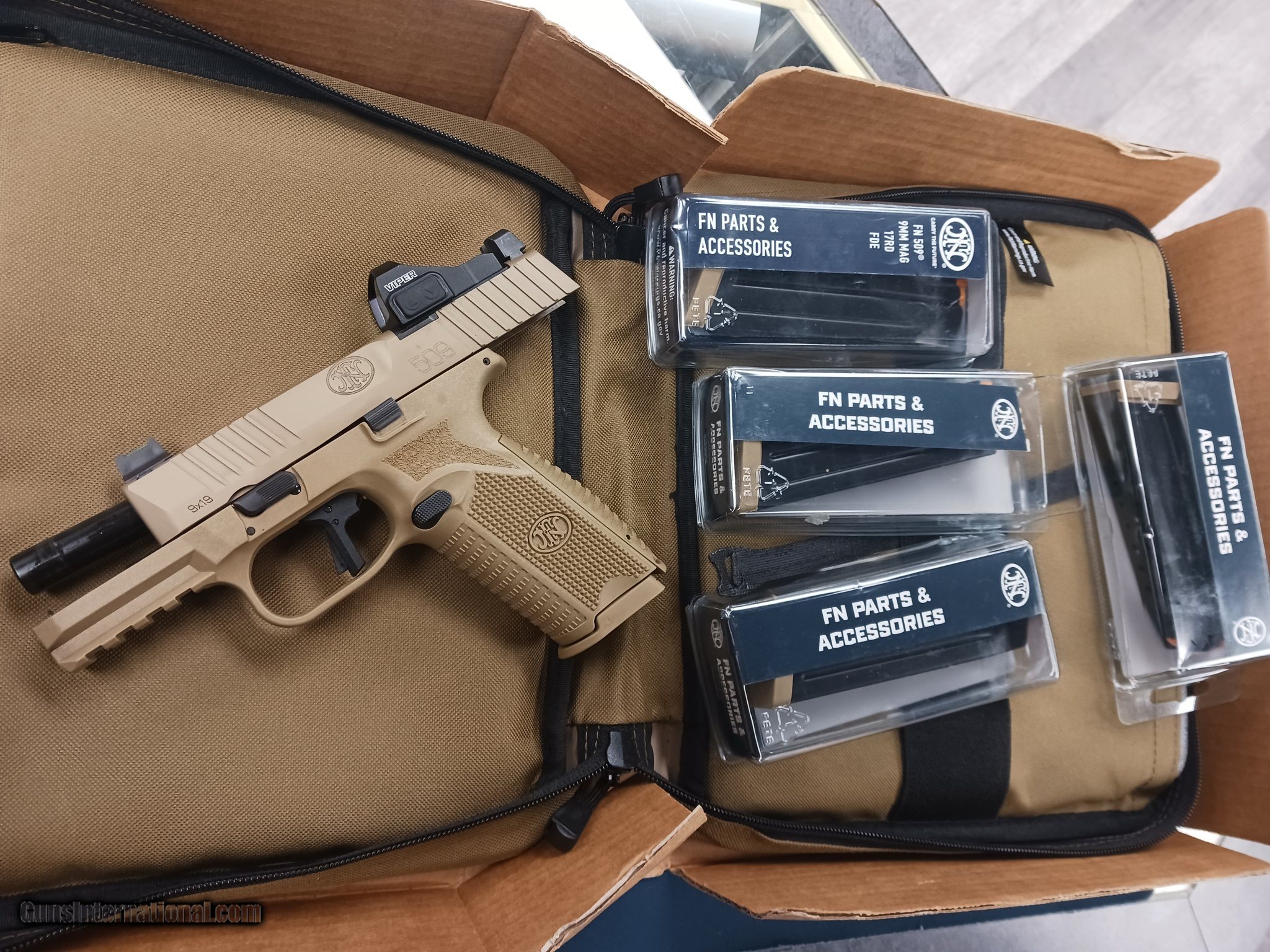 Description: Guns Listing ID: 476988 Step up your shooting game with the FN 509, now upgraded with the Vortex Viper Red Dot for faster target acquisition and enhanced accuracy. With 5 high-capacity magazines and the original packaging, you’ll have everything you need to take your shooting experience to the next level. Key Features: FN 509 Pistol: Legendary FN reliability, precision-engineered for personal defense, target shooting, and tactical use. Vortex Viper Red Dot: Precision at lightning speed. The Viper‚‚s ultra-clear, crisp sighting system gives you faster target acquisition and improved accuracy with every shot. 5 Magazines Included: Extra magazines ensure you‚‚re always ready for action. Perfect for the range or high-round count situations. Original Boxes: Secure and organized, each accessory comes in its original box for storage and transport. Striker-Fired Action: Smooth, consistent trigger pull, shot after shot. Full-Size Frame: Optimized for a steady, comfortable shooting experience, with great balance and minimal recoil. Enhanced Grip Texture: Ergonomically designed for maximum comfort and control in all conditions. The Ultimate Package – Ready to Go Whether you’re a competitive shooter, a tactical professional, or a firearm enthusiast, the FN 509 paired with the Vortex Viper Red Dot and 5 magazines offers unbeatable versatility and performance. With the original boxes included, you’re getting a complete, high-quality setup that’s perfect for any missio SOLD Manufacturer: FN Model: 509 Condition: Used - Non-Certified Barrels: 3.7 Gauge Info: 9MM LUGER (9x19 PARA) Finish: coyote |