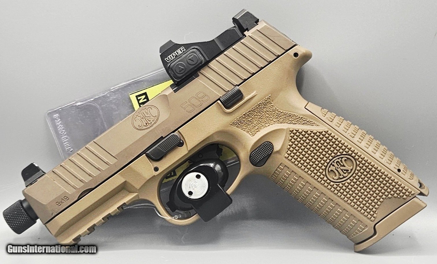 Description: Guns Listing ID: 581043 This is an FN 509 Tactical Semi-Auto Pistol in FDE with Vortex Viper Micro Red Dot Sight in VERY GOOD condition with very minimal cosmetic damage. It comes with one 17-round magazine, a 24-round magazine, and its original carrying soft case. The FN® 509™ Tactical Semi-Auto Pistol in FDE with Vortex® Viper Micro Red Dot Sight Package delivers superior reliability, impeccable accuracy, and maximum firepower with extended magazines and a full-size frame. The 1/2x28\"-threaded barrel readily accepts a variety of aftermarket muzzle devices and suppressors, while the integrated accessory rail readily accepts a variety of aftermarket lights, lasers, and other accessories. Cartridge 9mm Barrel Length 4.5\" Finish Flat Dark Earth Stock Color Flat Dark Earth Round Capacity 17 and 24 Action Semi-Automatic Description FN 509 TACTICAL VIPER Gun Weight 27.9 oz. 1313925-BEM-LM Manufacturer: FN Model: 509 Caliber Info: 9MM LUGER (9x19 PARA) Condition: Used - Non-Certified Barrels: 4.5" BARREL Action: SEMI AUTOMATIC Finish: flat dark earth Price: $799.99 Contact Seller |