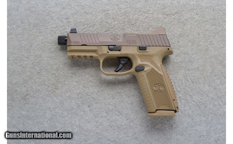 Description: This FN Model 509 is a right hand semi-auto pistol in 9mm Cal. It has a 4.5 inch threaded end barrel with a front and rear serrated FDE slide. A blade front sight and notch rear sight. 3 dot luminous night sights. The grip is a textured dark tan polymer with an interchangeable back strap. It has a lower accessory rail. The magazine release is ambidextrous. 9mm Parabellum SOLD Chambers: 17 round and 24 round magazines. Metal Condition: Excellent. Bore Condition: Excellent. Barrels: 4.5 inch threaded end barrel. Weight: 28 oz. Sights: Blade front. Notch rear. 3 dot luminous night sight. Item Location: Richfield, WI |