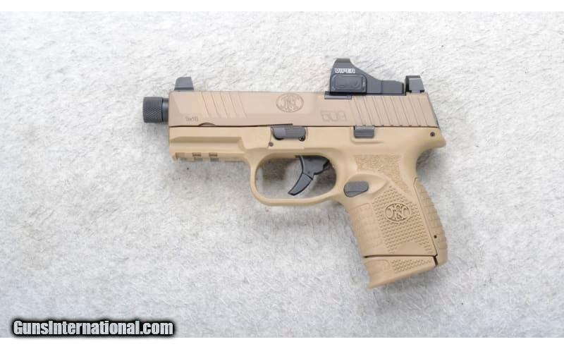 Description: This FN Model 509 is a right hand semi-auto pistol in 9mm Cal. It has a 4.25 inch threaded end barrel with a front and rear serrated slide. A blade front sight and notch rear sight with 3 luminous sight dots. It is outfitted with a Vortex Viper red dot sight. The grip is a deep checkered dark tan polymer. It has a lower accessory rail. 9mm Parabellum SOLD Chambers: 12 round magazine. Metal Condition: Excellent. Bore Condition: Excellent. Barrels: 4.25 inch threaded end barrel with a front and rear serrated slide. Weight: 26 oz. Sights: Blade front. Notch rear. 3 luminous sight dots. Vortex Viper red dot sight. Item Location: Richfield, WI |