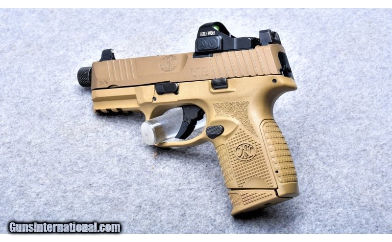 Description: Very high condition FN 509 shows a couple minimal scratches. Includes softcase, (1) 12 rnd. , (1) 17 rnd., (1) 24 round magazine. Also includes We The People left handed holster. 9mm Luger SOLD Metal Condition: FDE Finish Bore Condition: Bright and shiny Barrels: "4.5 Inch, Threaded with Protector Triggers: Striker Weight: 1.75 lbs. Sights: "Suppressor height sights, Vortex Viper red dot Item Location: Buda, TX |