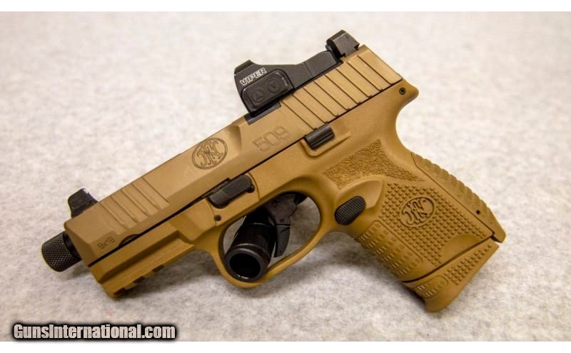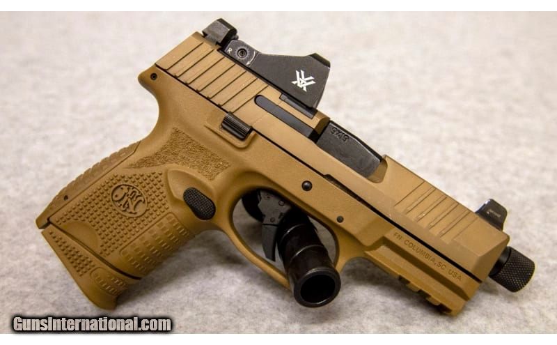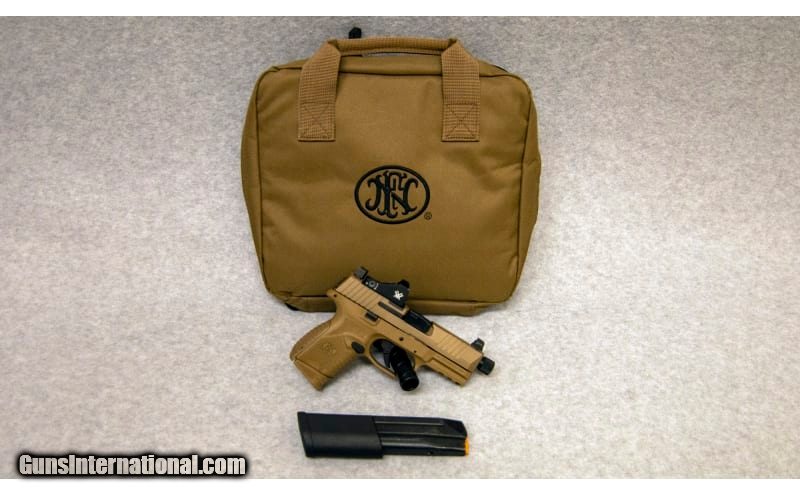Description: FN 509 Compact Tactical, chambered in 9 mm. Features include: striker fired autoloader, polymer frame, 4.3 in. CHF threaded barrel, recessed target crown, external extractor, compatible w/FN Low Profile Optics-Mounting System, enhanced textured grips, fully ambi stop slide stop lever and mag. release, Mil-Std 1913 Picatinny rail, FDE finish, 26.2 oz. 9mm Luger SOLD Chambers: 9 mm Metal Condition: Excellent Bore Condition: Excellent Barrels: 4.3' Sights: "3 Dot, Vortex Viper Item Location: Fort Mill, SC |