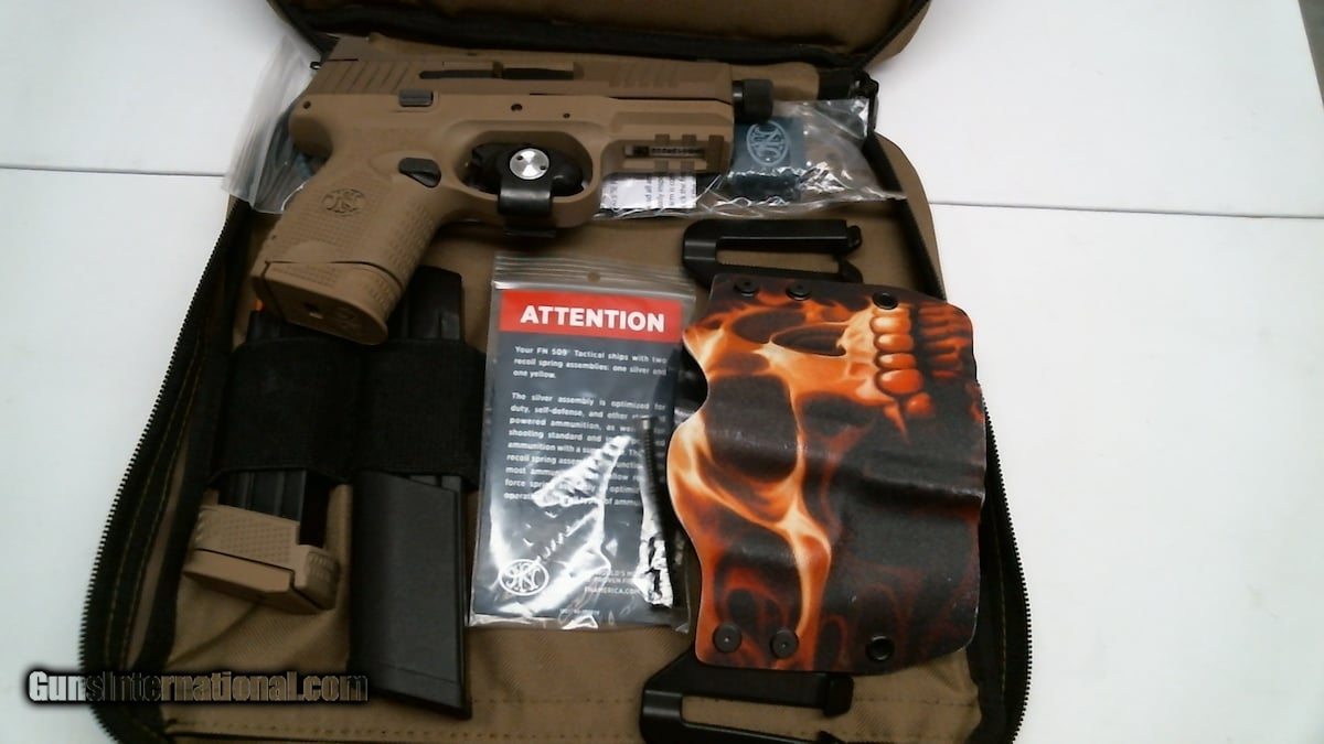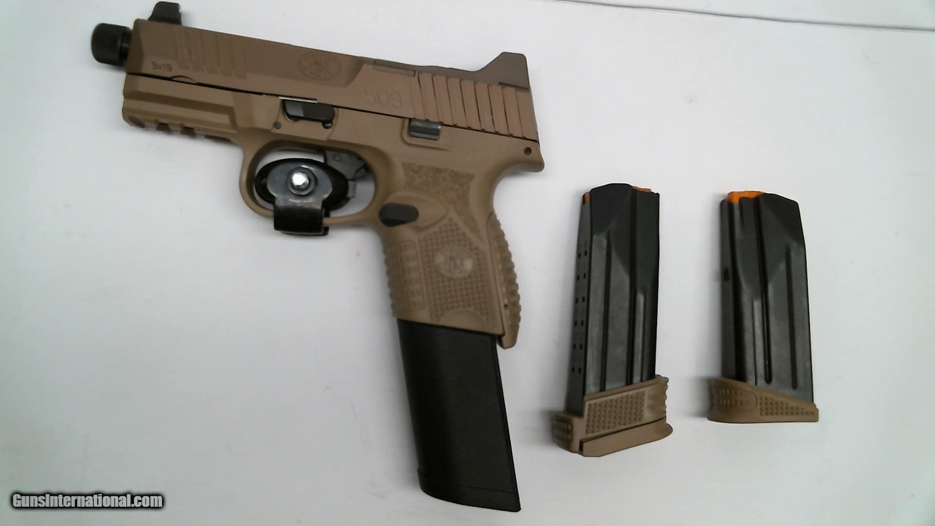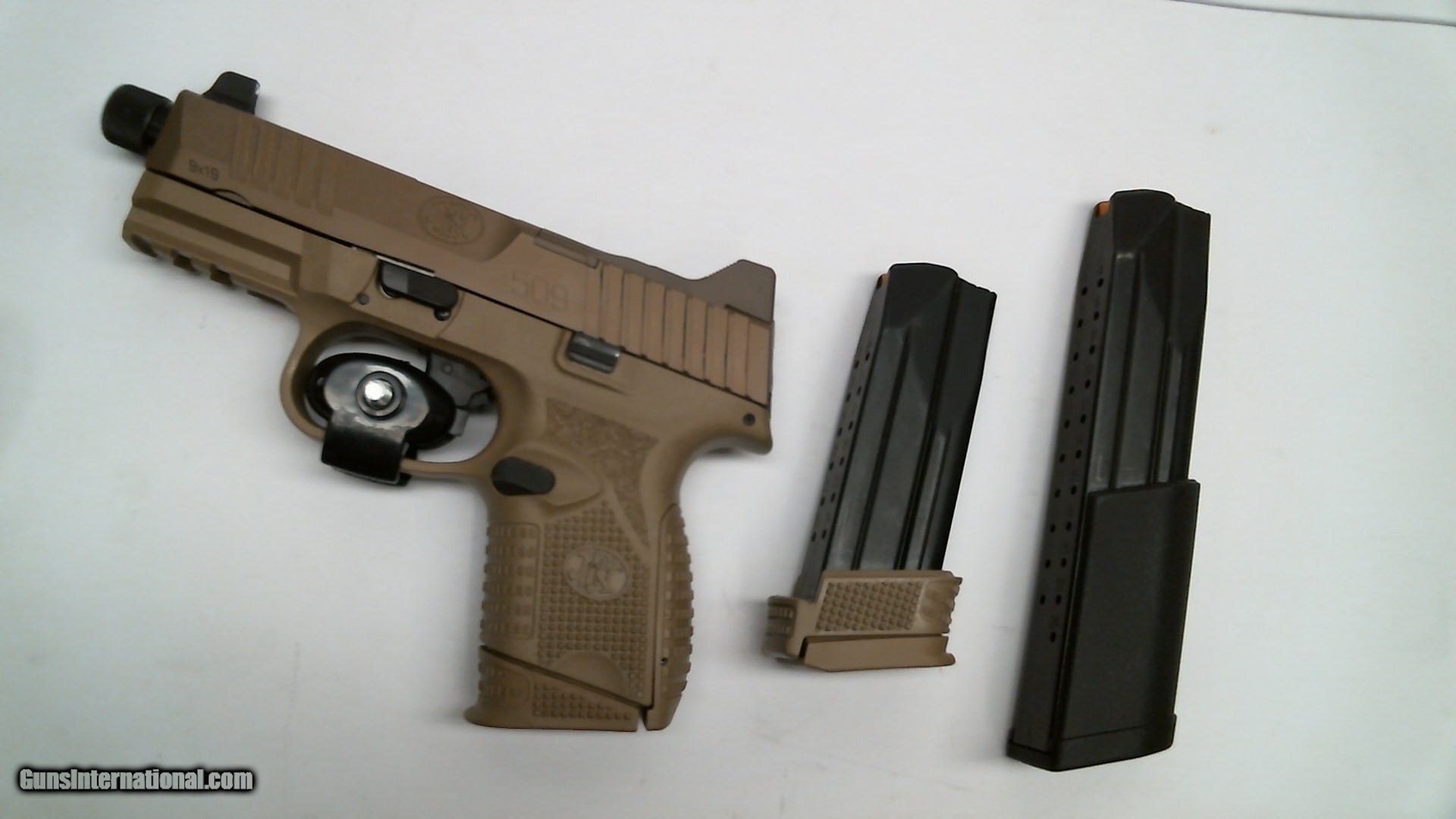 Description: Guns Listing ID: 443770 FN 509 Compact Tactical in excellent condition. Comes with original case, manual, 3 magazines (1 12 round, 1 15 round, and 1 24 round.), and holster. SOLD Manufacturer: FN Model: 509 Compact TACTICAL Caliber Info: 9 MM LUGER (9X19 PARA) Condition: Used - Non-Certified Barrels: 4.5 BARREL Finish: FDE |