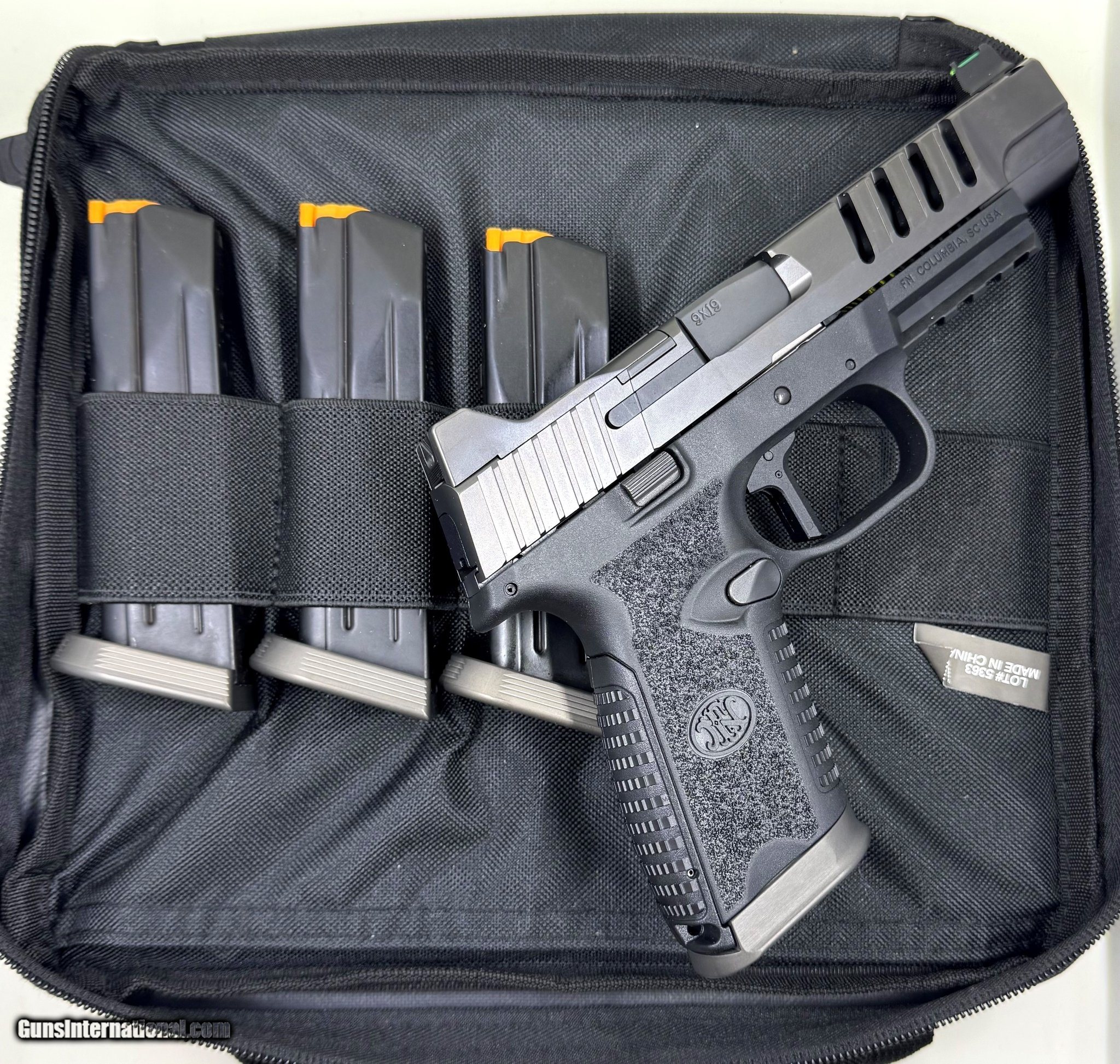 Description: Guns Listing ID: 486377 FN 509 LS Edge 9mm Semi-Auto Pistol (5\" Barrel) For sale is an FN 509 LS Edge 9mm semi-automatic pistol, featuring a 5” barrel for exceptional accuracy and performance. With its sleek design and precision engineering, the FN 509 LS Edge is a perfect choice for those seeking a high-quality handgun for both competition and personal defense. This pistol is in like-new condition and has been well-maintained. Key Features: Caliber: 9mm Model: FN 509 LS Edge Barrel Length: 5 inches for improved accuracy Condition: Like new – barely used, excellent working order Included: Three (3) magazines for added capacity and convenience Original paperwork for verification and your reference Black soft carry case for easy storage and transport The FN 509 LS Edge boasts a custom-tuned trigger, enhanced grip texture, and an optics-ready slide, making it an ideal pistol for competitive shooting or anyone looking for a high-performance firearm. Its ergonomic design ensures a comfortable and secure grip, and the 5” barrel delivers improved accuracy for both rapid and precision shooting. This pistol is ready for action, whether you’re hitting the range or looking to add a premium firearm to your collection. Don’t miss out on this like-new FN 509 LS Edge! SOLD Manufacturer: FN Model: 509 LS EDGE Caliber Info: 9MM LUGER (9x19 PARA) Condition: Used - Non-Certified Barrels: 5 Finish: black |