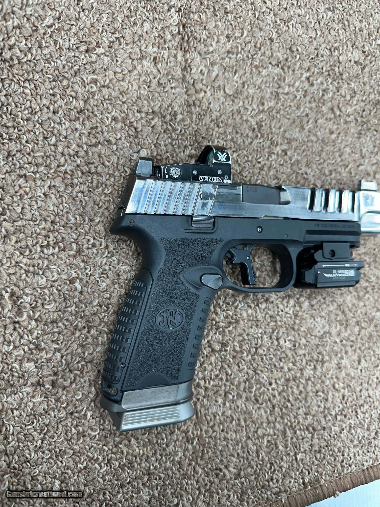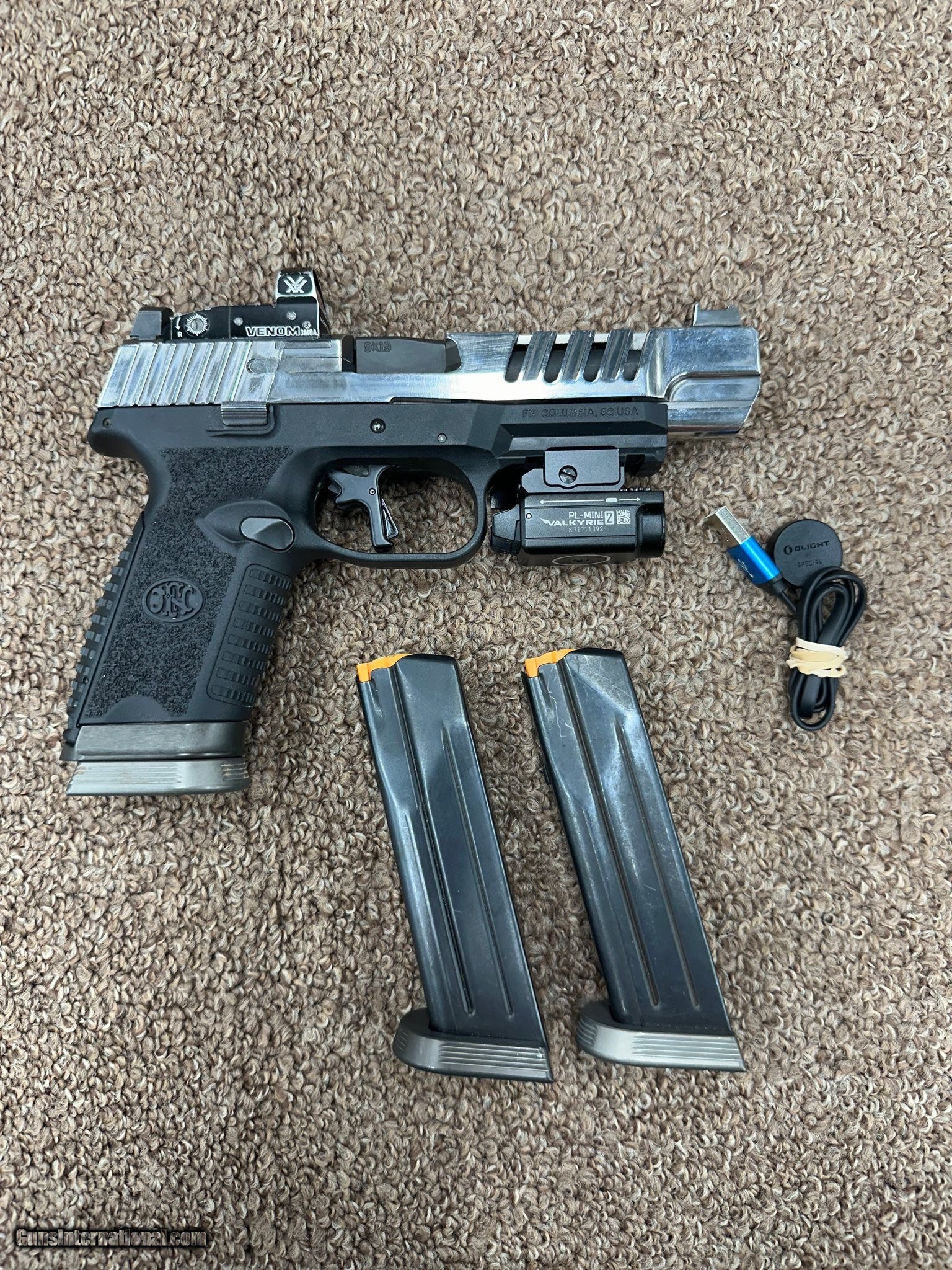 Description: Guns Listing ID: 571132 FN LS Edge with Vortex Venom 3MOA and Olight PL-Mini 2 Valkyrie. Comes with two additional magazines and charger cord for Olight. Pistol is on good condition with signs of wear and use. Optic and light are tested and functional. Manufacturer: FN Model: 509 LS Edge Caliber Info: 9MM LUGER (9x19 PARA) Condition: Used - Non-Certified Barrels: 5" BARREL Action: SEMI AUTOMATIC Finish: stainless Price: $999.99 Contact Seller |