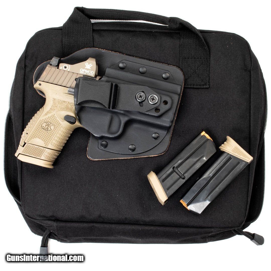 Description: Guns Listing ID: 547424 This FN comes with one 15-round magazine, one 12-round magazine, one 10-round magazine, an FN soft case, co-witness sights, a Vedder IWB holster, and it‚s equipped with a Viper OPMOD red dot optic. SOLD Manufacturer: FN Model: 509 MRD Caliber Info: 9MM LUGER (9X19 PARA) Condition: Used - Non-Certified Barrels: 3.60 BARREL Action: SEMI AUTOMATIC Finish: tan Weight: 1.6 |