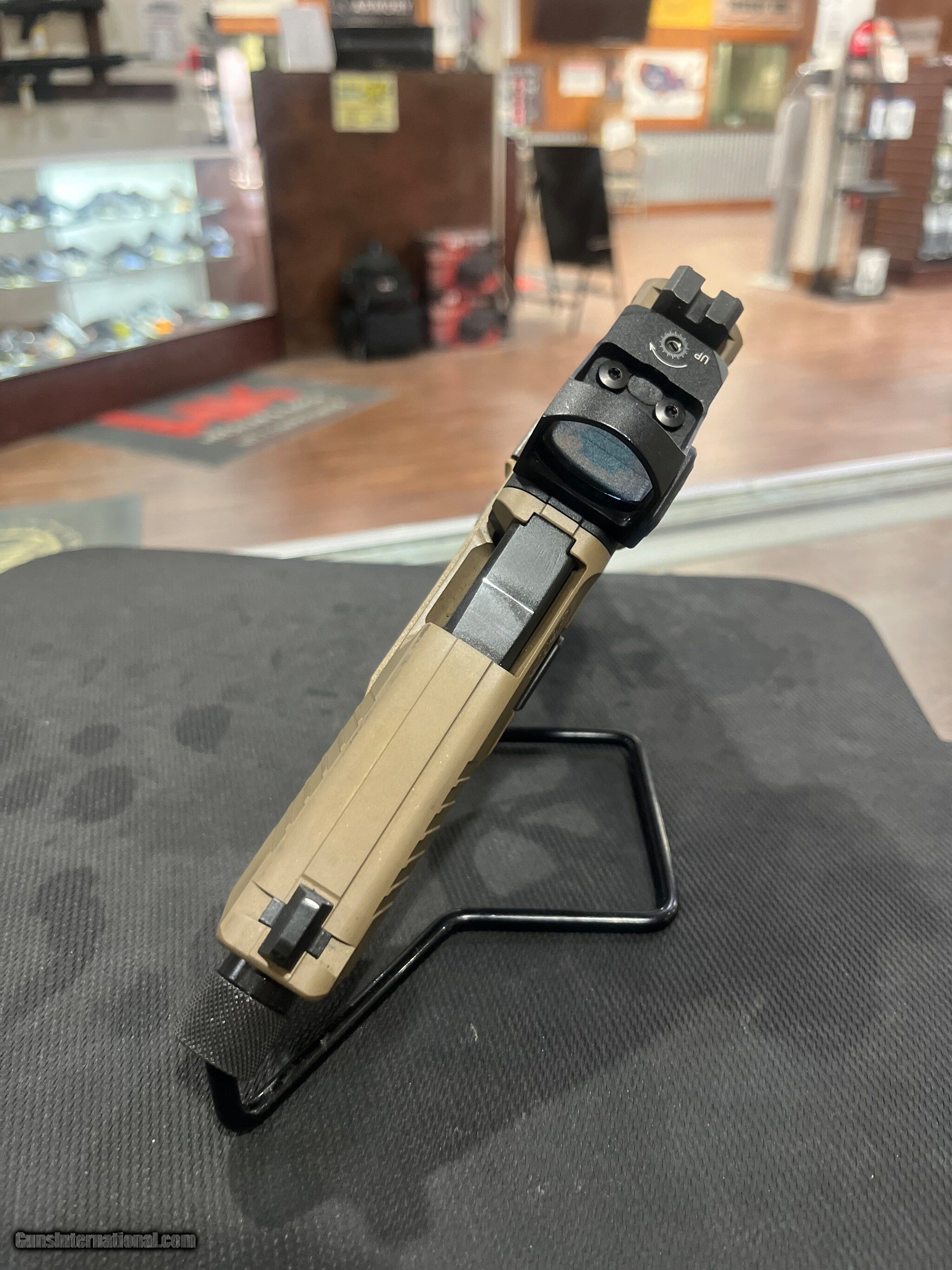 Description: Guns Listing ID: 1232194 Gun is in like new condition! Shot very little. Has soft case, a 24 round magazine and a 17 round magazine. Has Vortex Viper red dot. FN‚‚s 509 pistol is built on the proven architecture of the FNS Compact. It features a cold hammer-forged stainless-steel barrel with a recessed target crown and polished chamber and feed ramp. The polymer frame has an enhanced grip texture for faster follow-up shots in all conditions, a MIL-STD-1913 accessory rail, and interchangeable backstraps. This striker-fired double action pistol has an external extractor, loaded chamber indicator, and no manual safety. It is equipped with a fully ambidextrous slide stop lever and magazine release. This FN 509 Tactical model has a Flat Dark Earth slide with an FDE polymer grip/frame, two FDE interchangeable backstraps, and suppressor height night sights. This model comes with one (1) 17-round magazine, one (1) 24-round magazines, and a FN logo soft pistol case SOLD Manufacturer: FN Model: 509 Tactical Caliber Info: 9MM LUGER (9X19 PARA) Condition: Used - Non-Certified Barrels: 4.5 BARREL Finish: FLAT DARK EARTH |