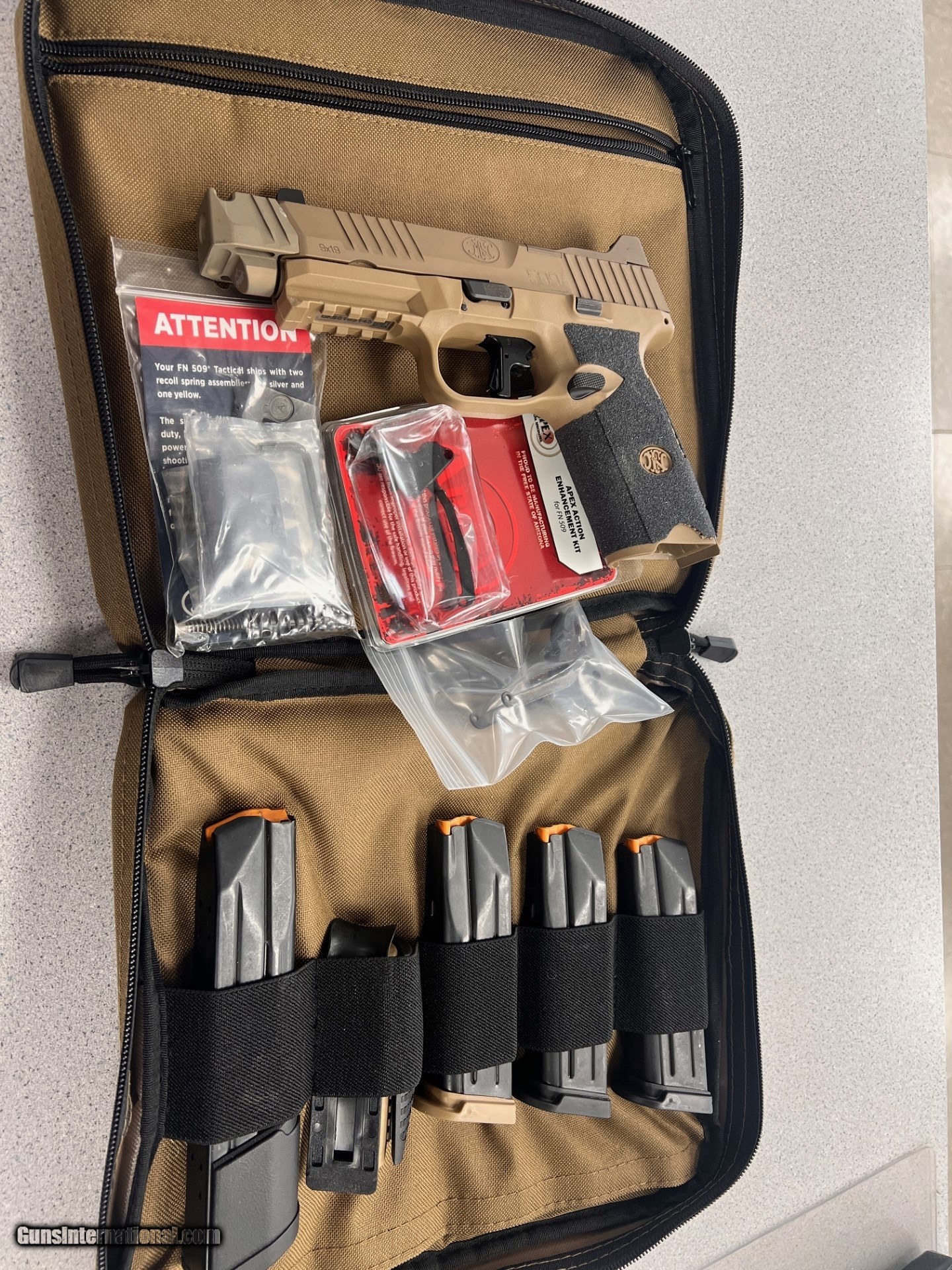 Description: Guns Listing ID: 1267655 VERY GOOD CONDITION. 4 MAGS TOTAL INCLUDING 1 EXTENDED. APEX TRIGGER INSTALLED AS WELL SOLD Manufacturer: FN Model: 509 TACTICAL Caliber Info: 9MM LUGER (9X19 PARA) Condition: Used - Non-Certified Barrels: 4.75 BARREL Finish: FDE |
