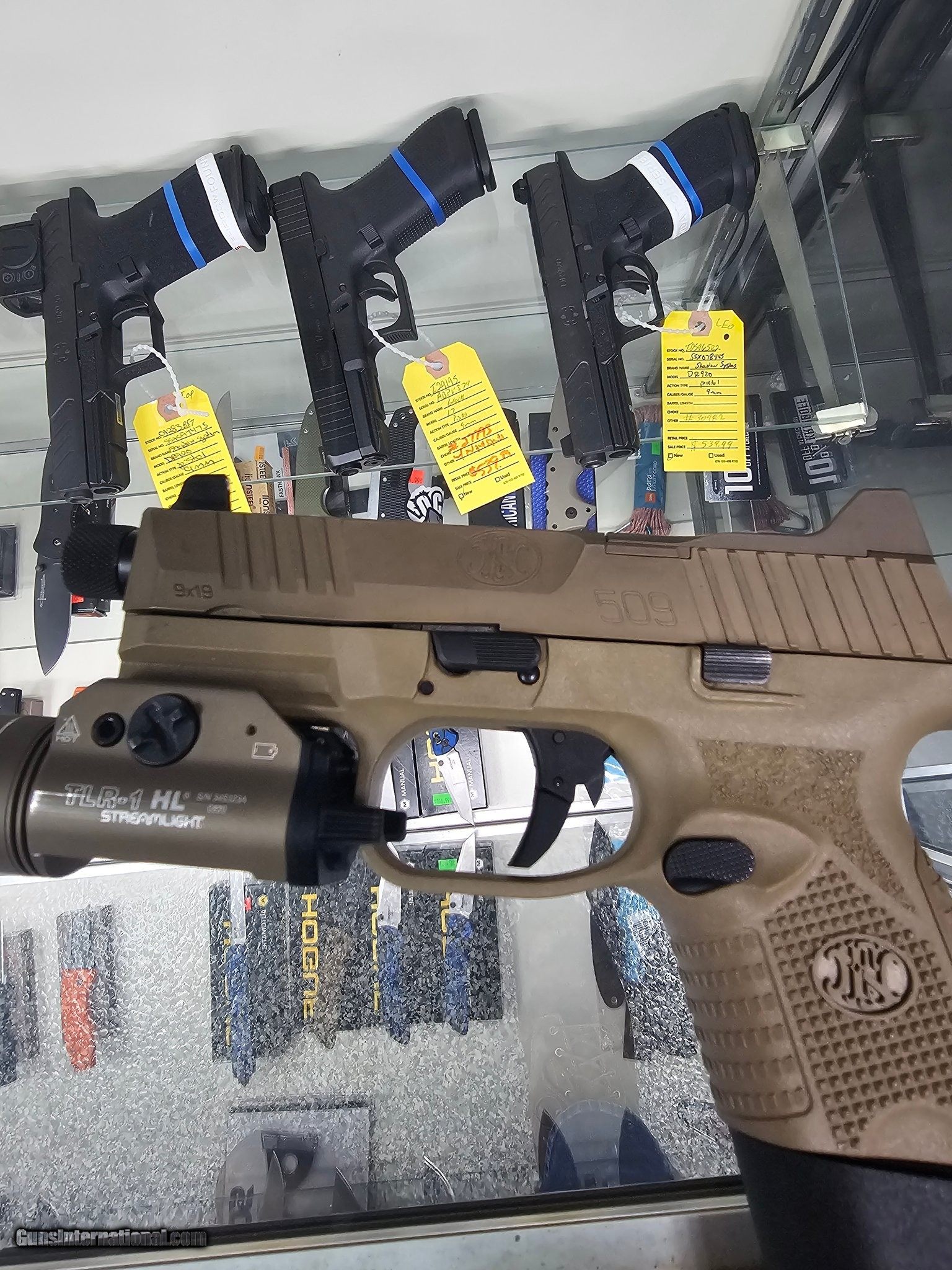 Description: Guns Listing ID: 618685 USED 509 TACTICAL NO BOX COMES WITH 1 MAG AND TLR-1 Manufacturer: FN Model: 509 TACTICAL Caliber Info: 9MM LUGER (9X19 PARA) Condition: Used - Non-Certified Barrels: 4.5" BARREL Action: STRIKER FIRED Finish: FDE Weight: 1.74 LBS. Price: $549.99 Contact Seller |